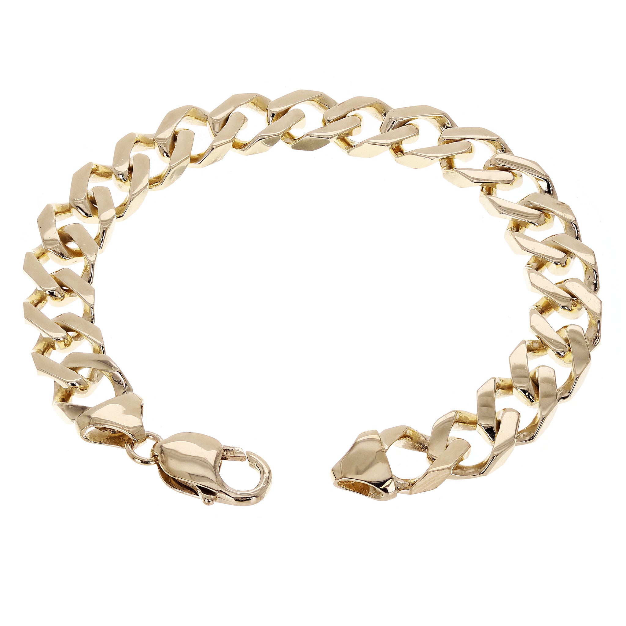 10k Yellow White or Rose Gold Solid Square Curb Link Chain Bracelet 10.3mm 7" - 9.5"