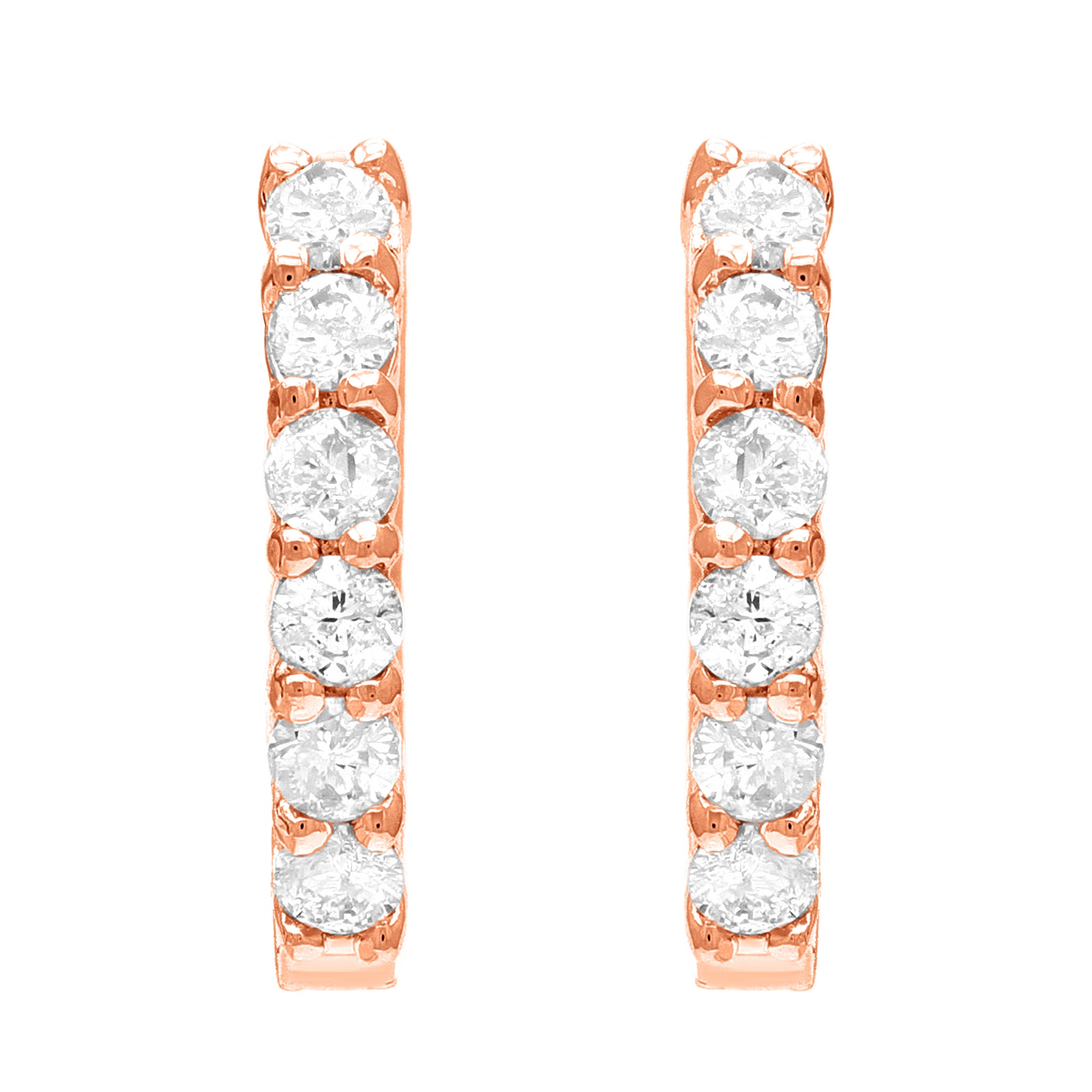 14k Rose Gold 0.75ctw Diamond Oblong Oval U-Shaped Hoop Earrings 15.9mm x 2.7mm