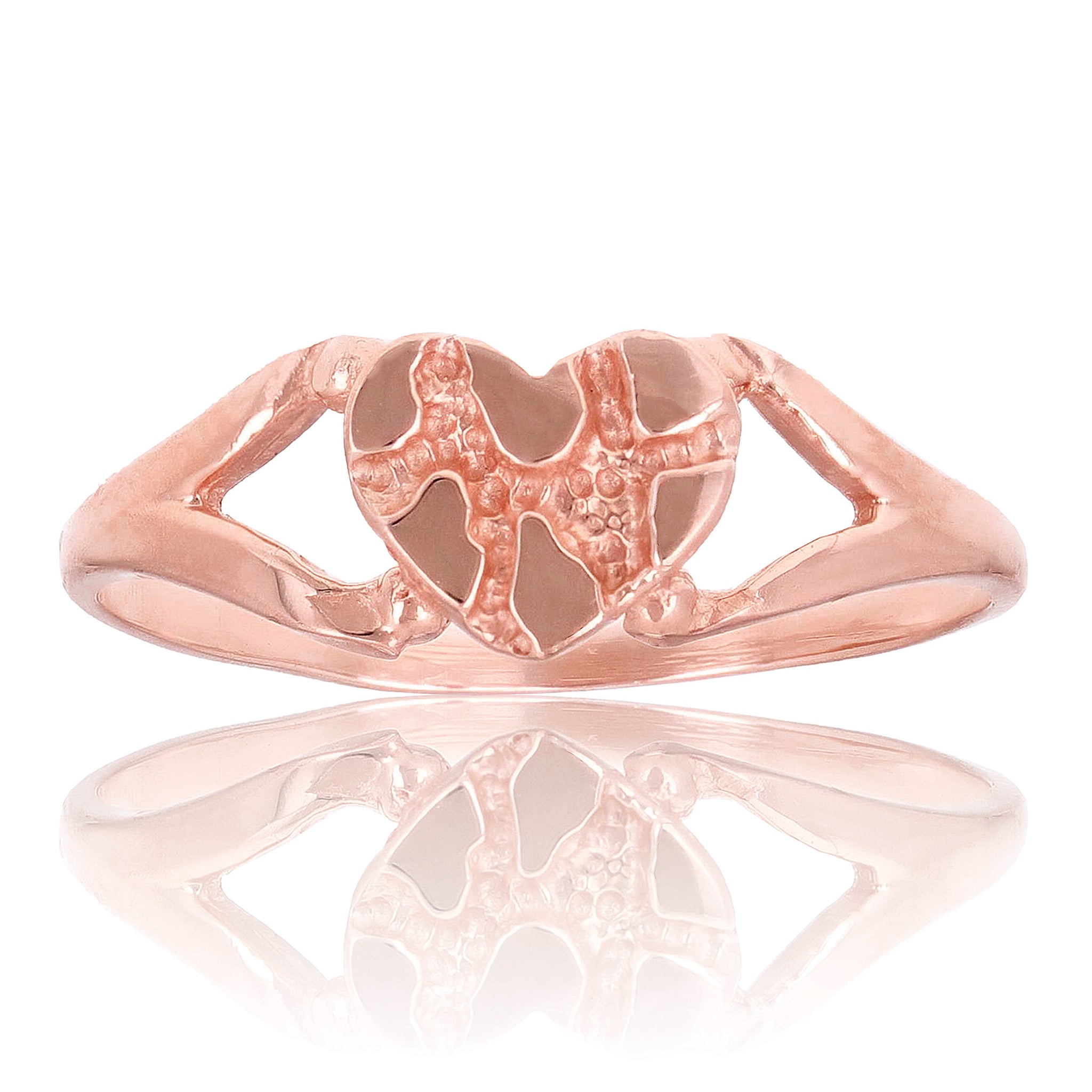 14k Rose Gold Nugget Heart Ring Band Sizes 5.5-10