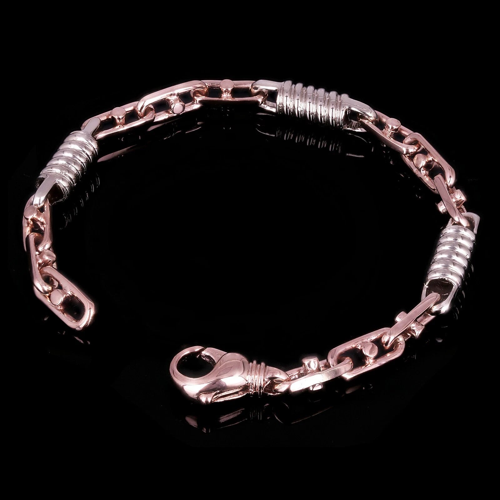 14k White & Rose Gold Handmade Fashion Link Bracelet 8" 7mm 28.5 grams