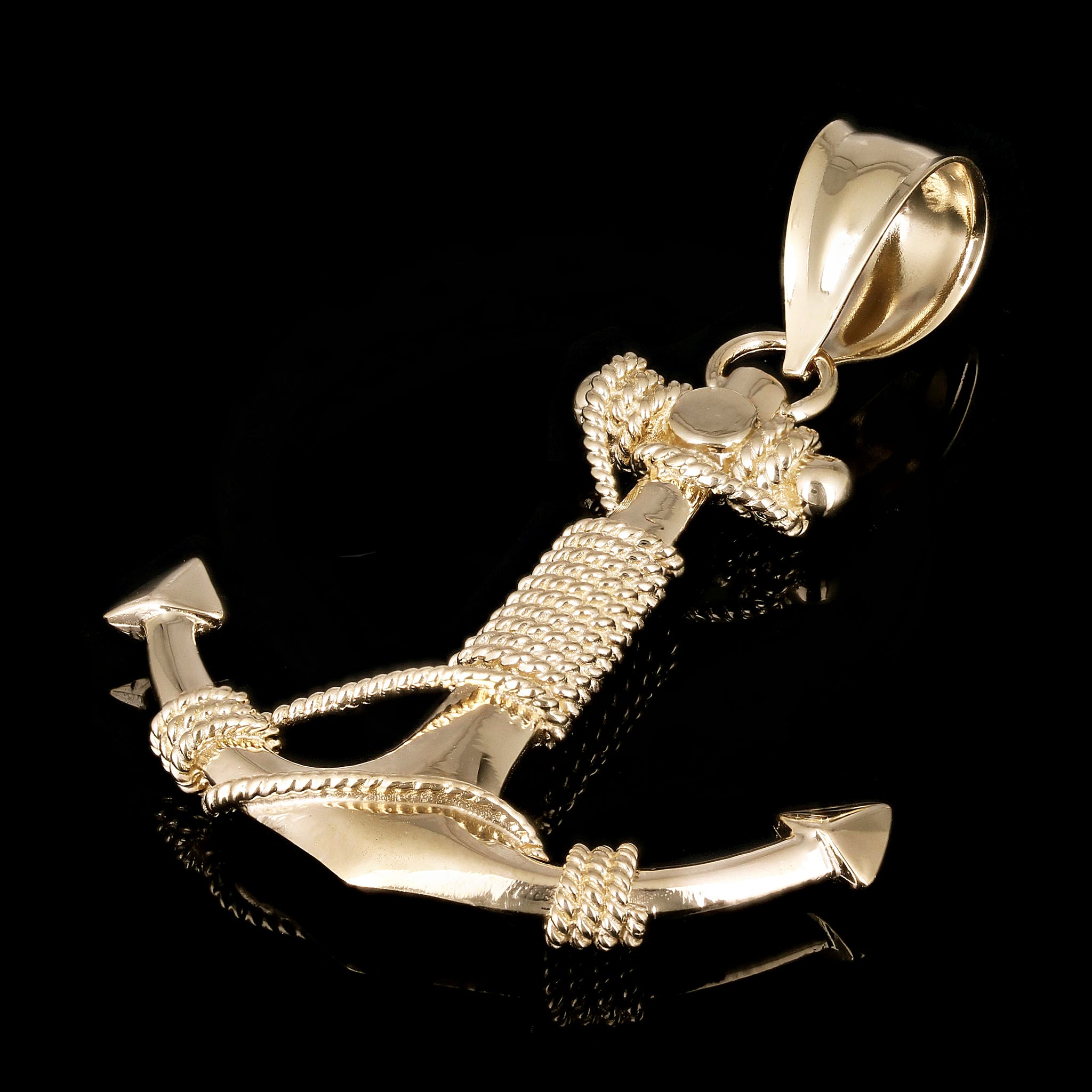 14k Yellow Gold Nautical Anchor Ship Mariners Rope Pendant 2.2" 13.5 grams