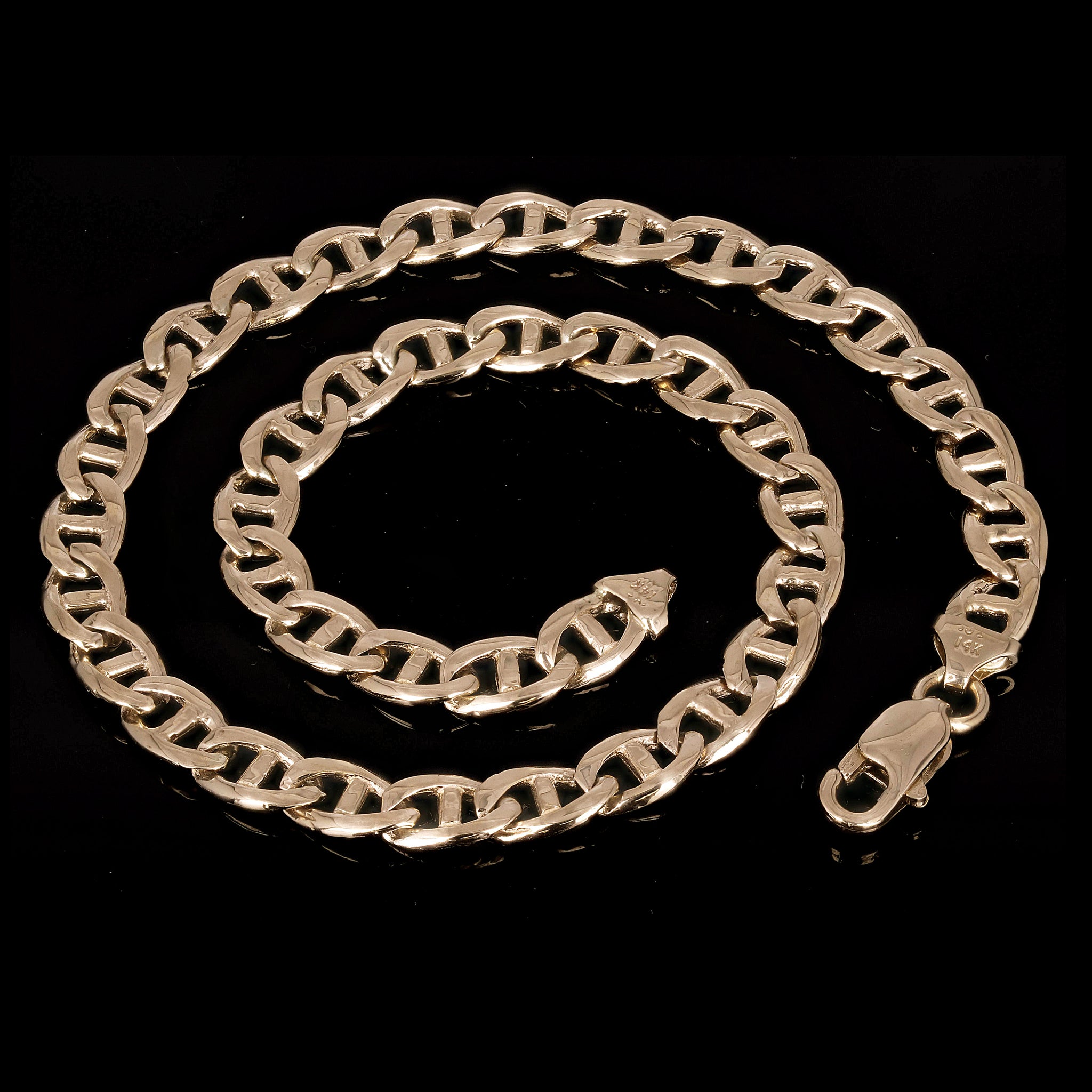 14k Yellow Gold Nugget Gucci Mariner Link Chain Bracelet 7.3mm 7" - 9"