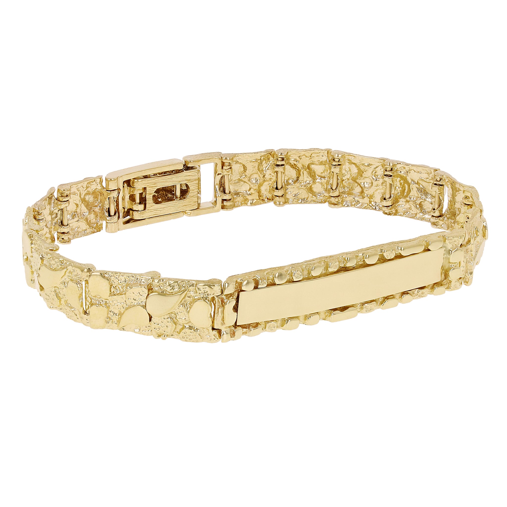 14k Yellow Gold Solid Nugget ID Bracelet 7" - 9" 9.8mm