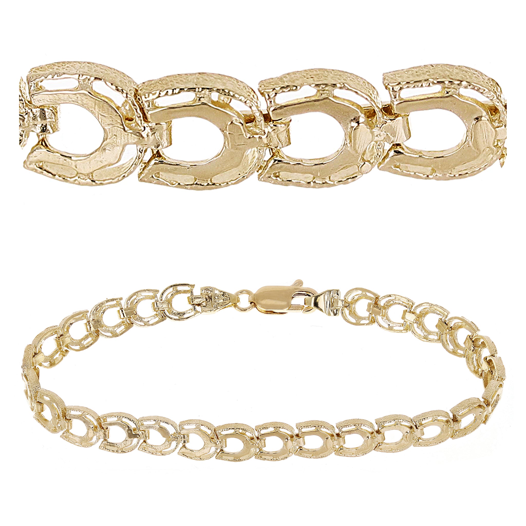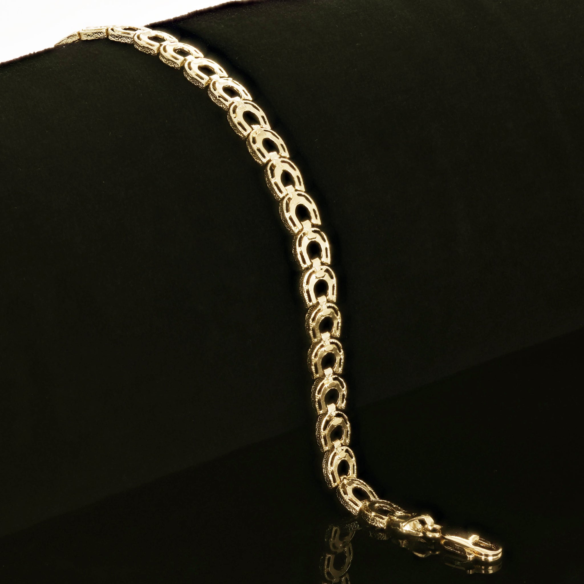 14k Yellow or White Gold Solid Diamond Cut Horse Shoe Bracelet 6.4mm Various Lengths