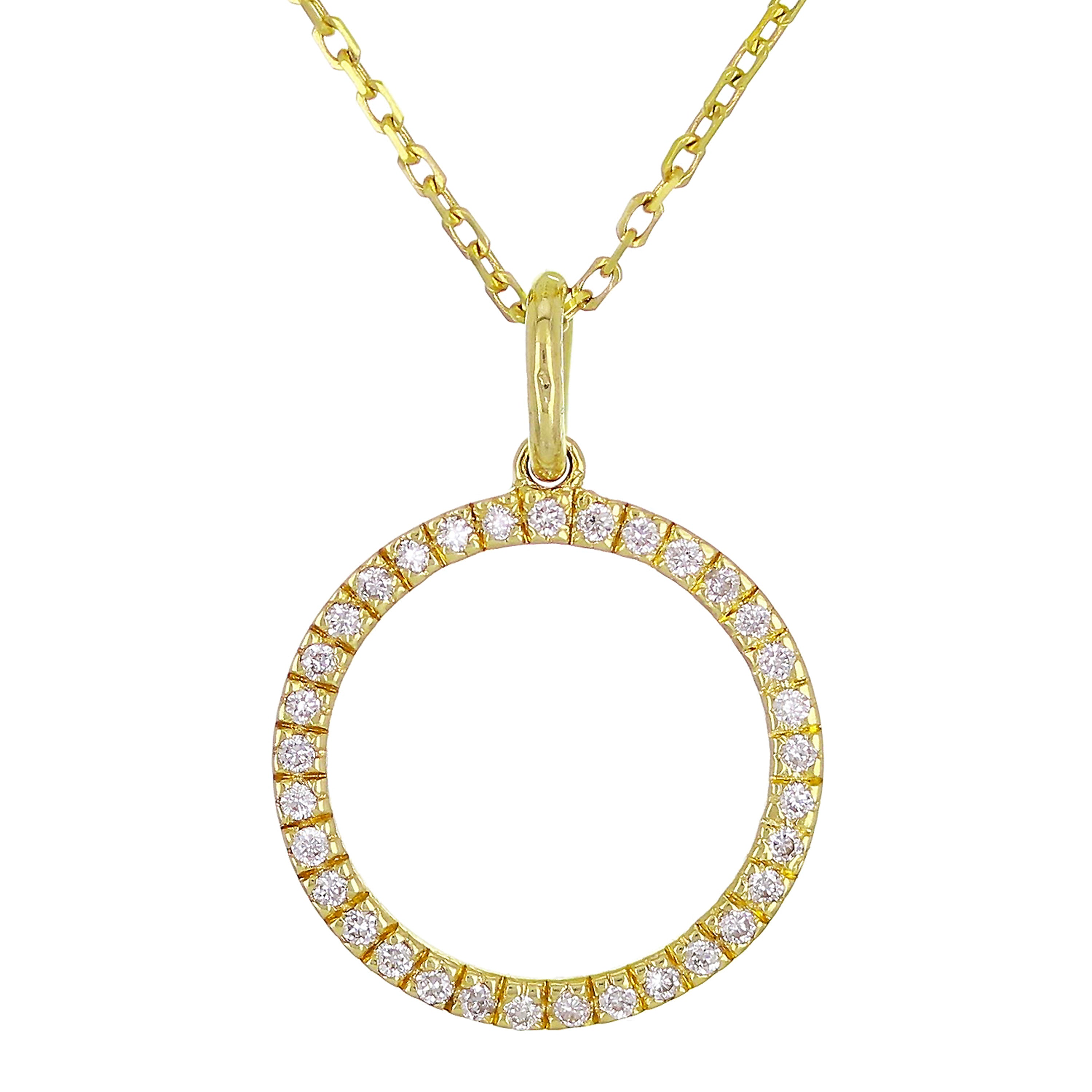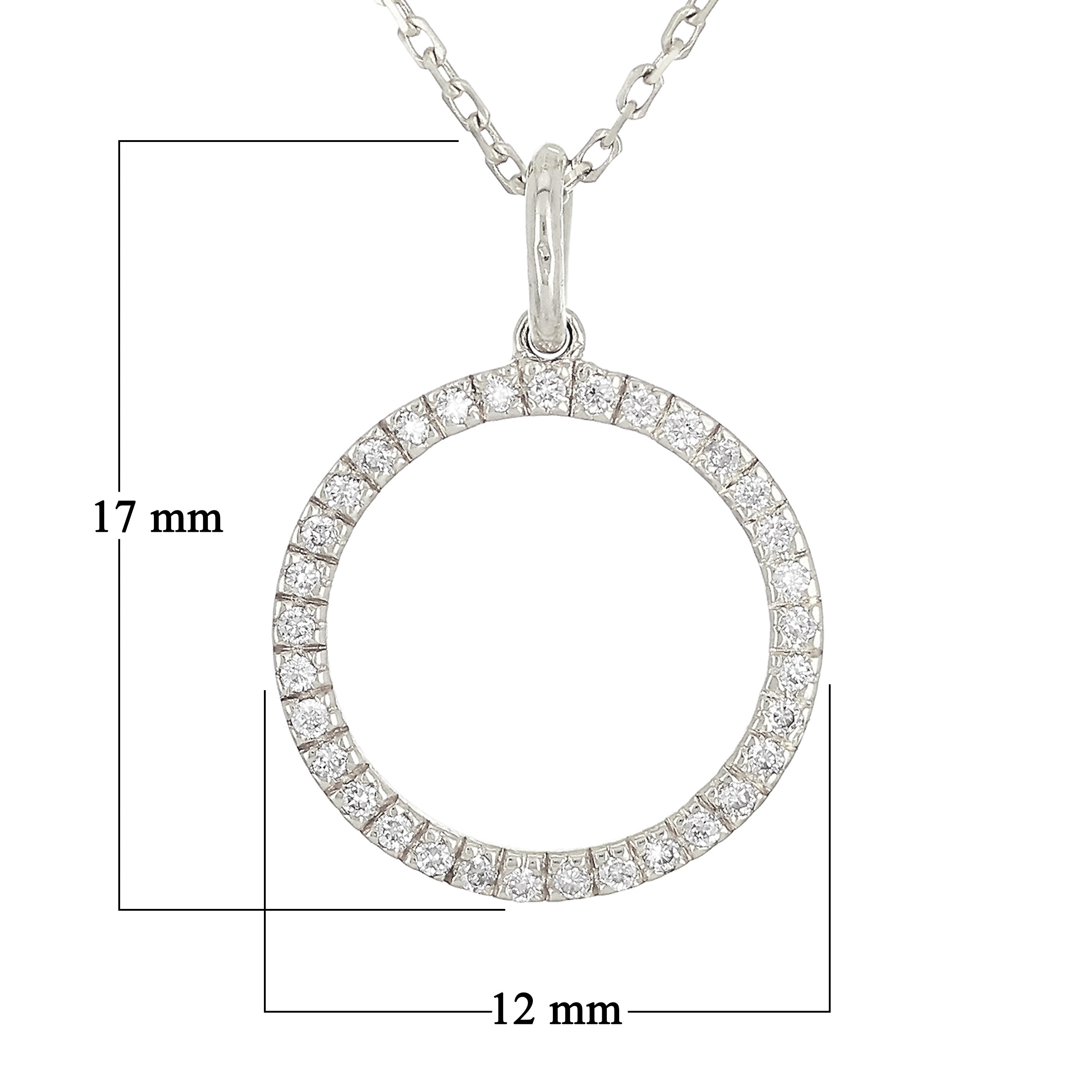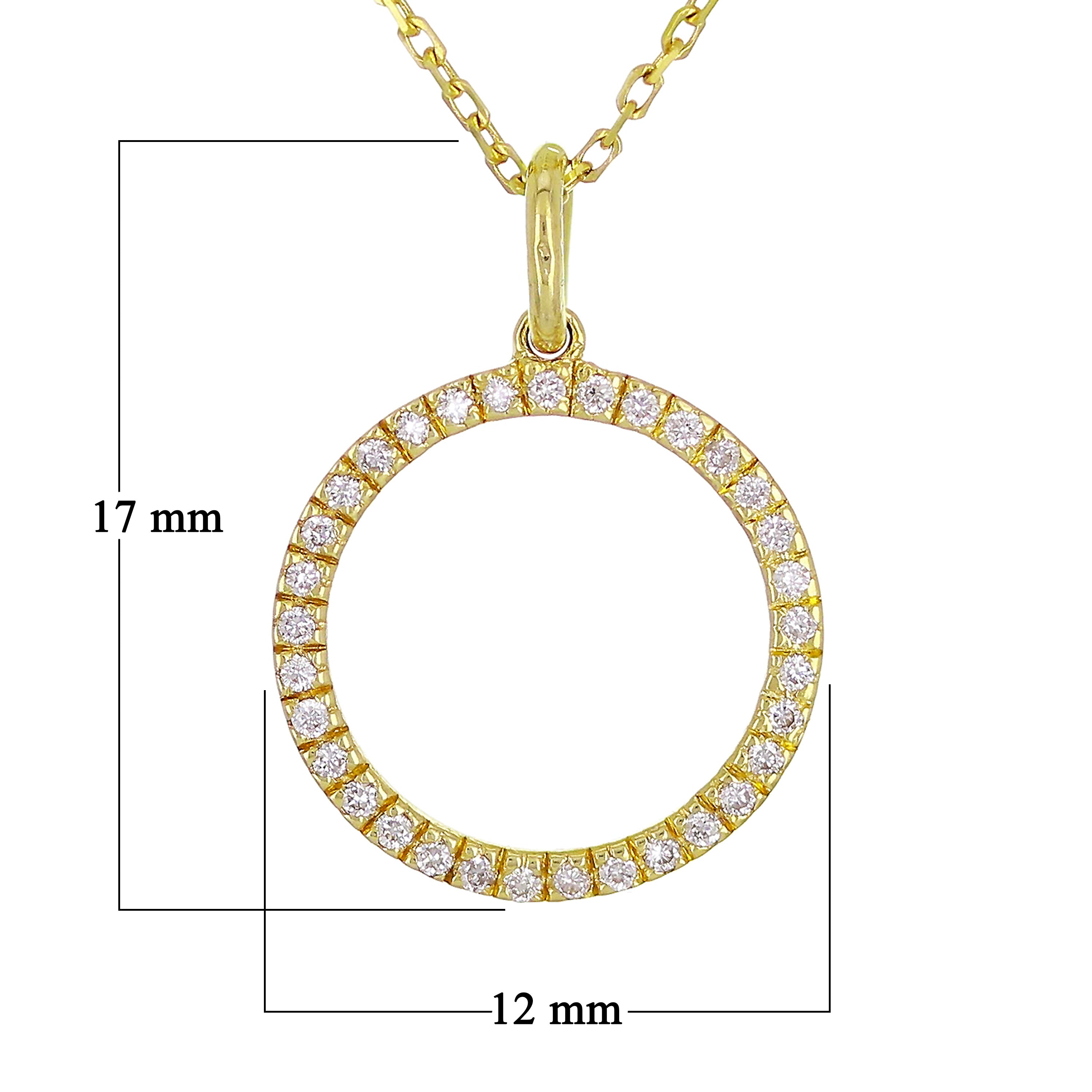 14k Yellow White or Rose Gold 0.12 ctw Diamond Circle Pendant Necklace 18"