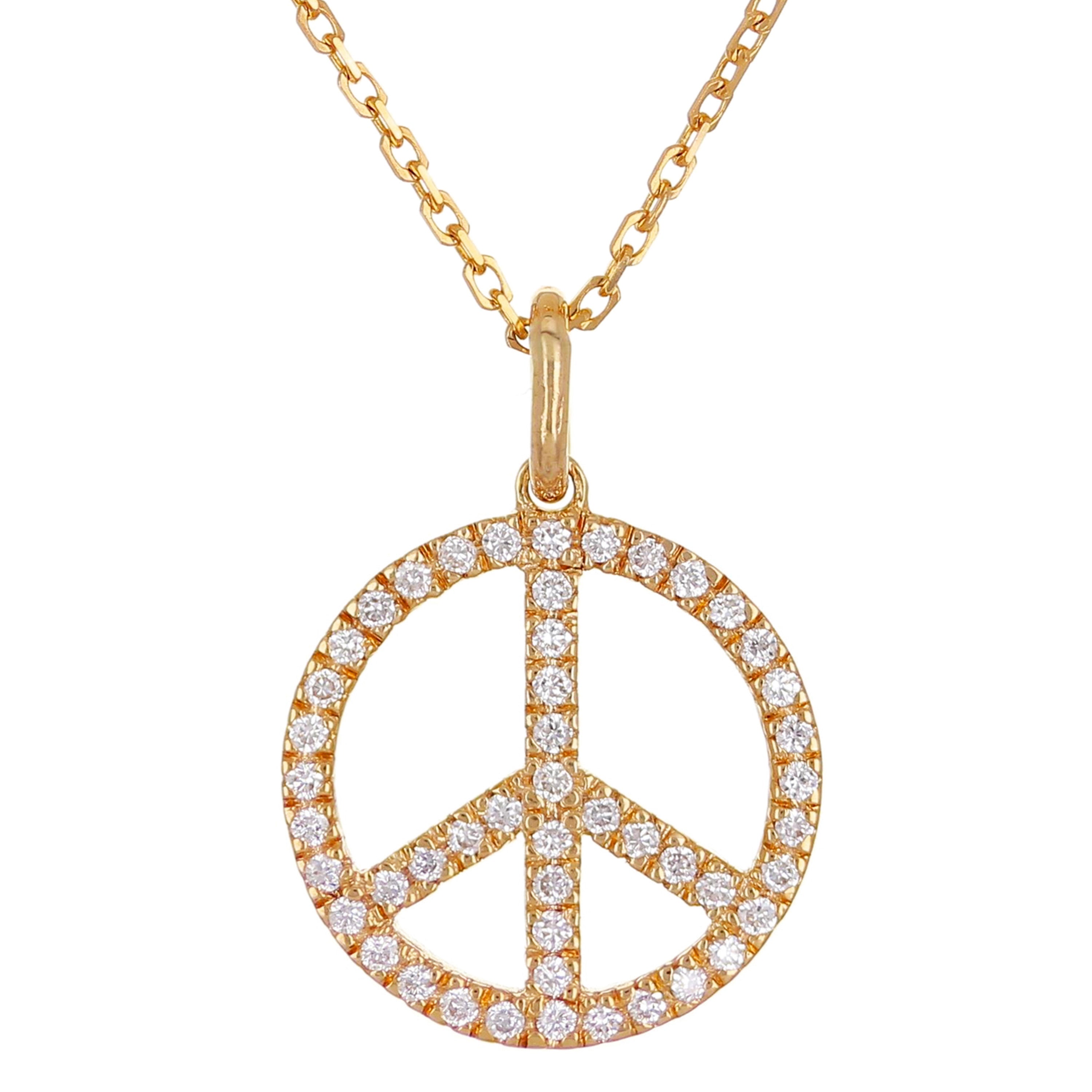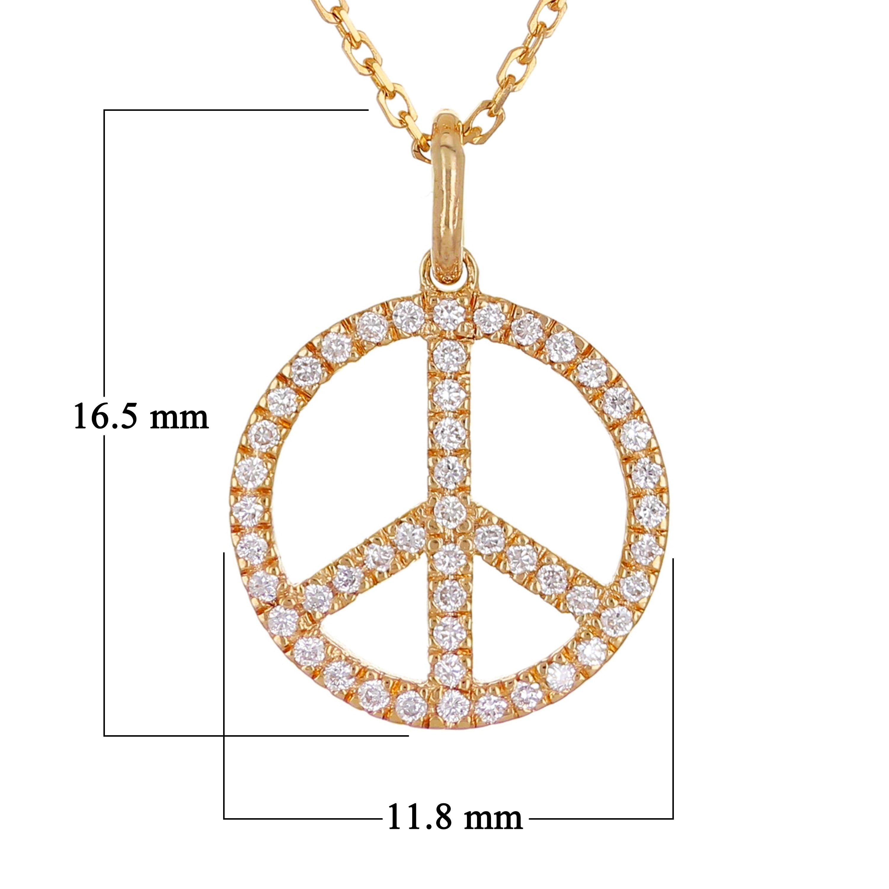14k Yellow White or Rose Gold 0.17 ctw Diamond Peace Sign Pendant Necklace 18"