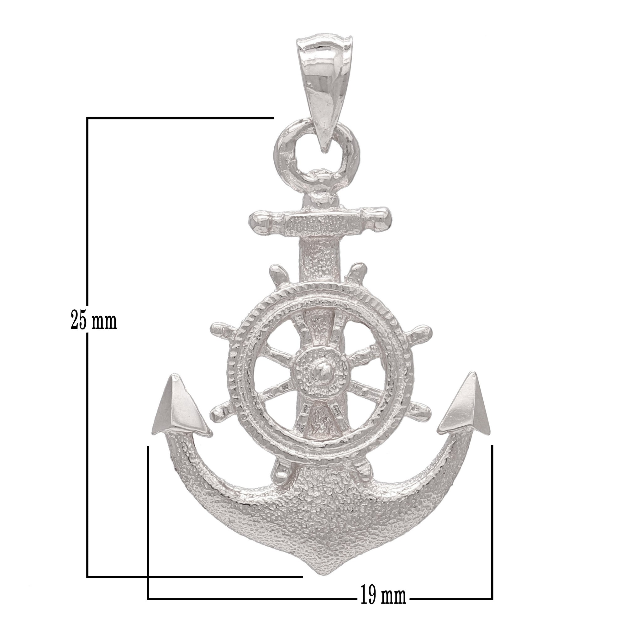 14k Yellow, White or Rose Gold Anchor and Ship Wheel Nautical Textured Pendant