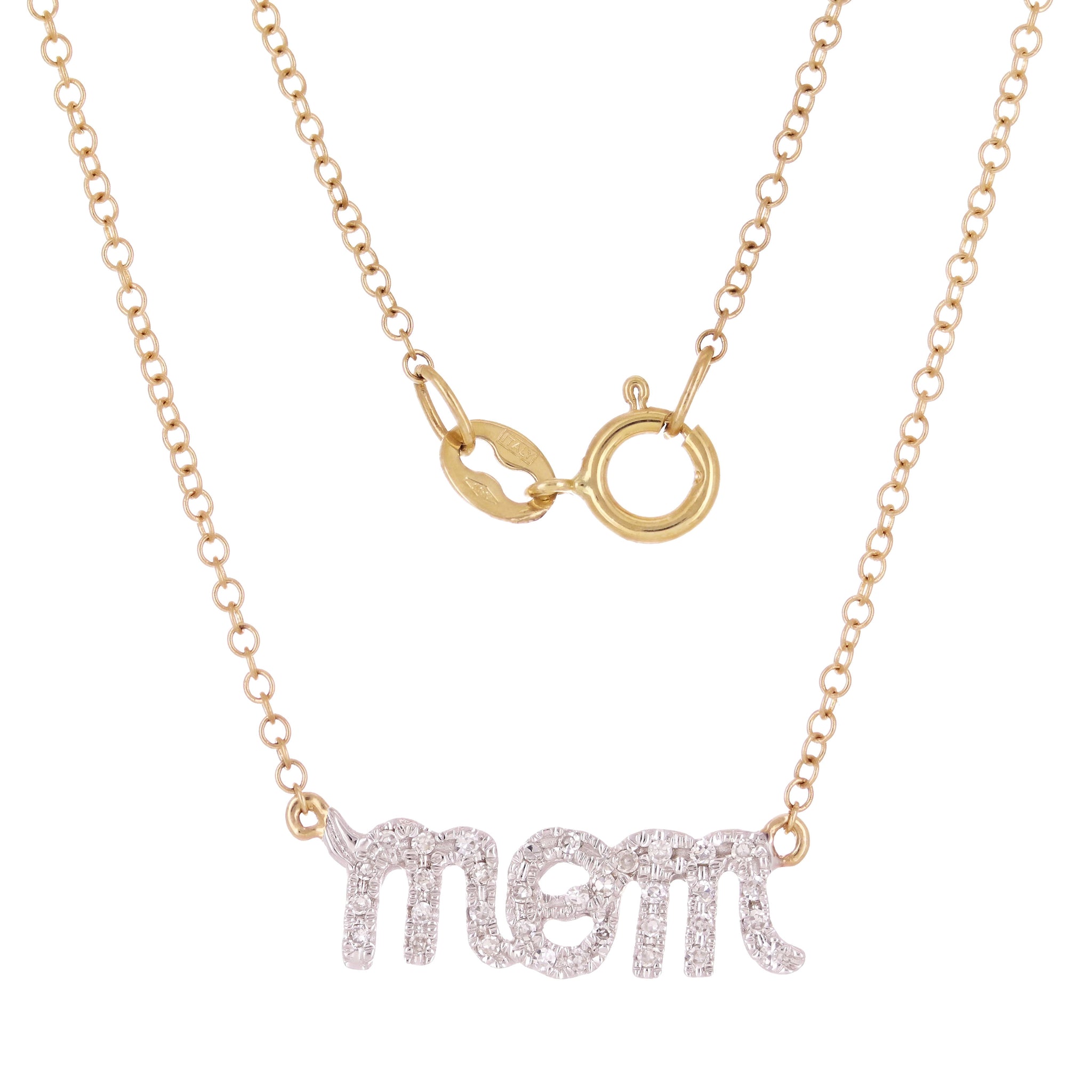 14k Yellow White or Rose Gold Diamond Accent MOM Inscribed Layering Adjustable Necklace