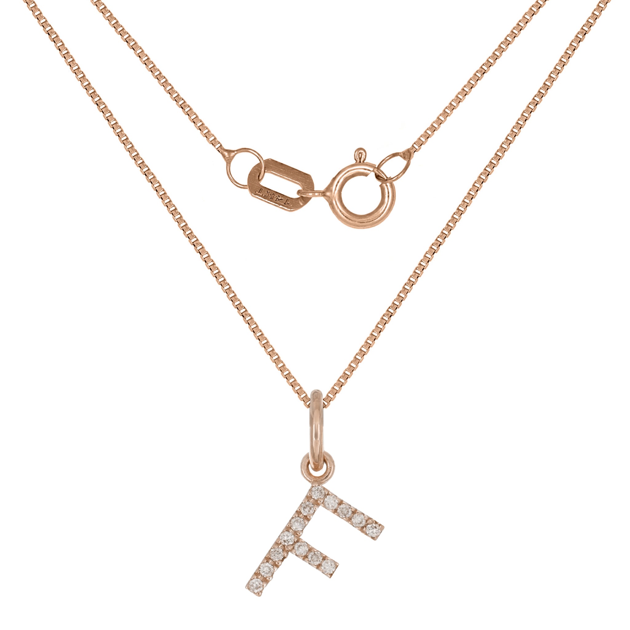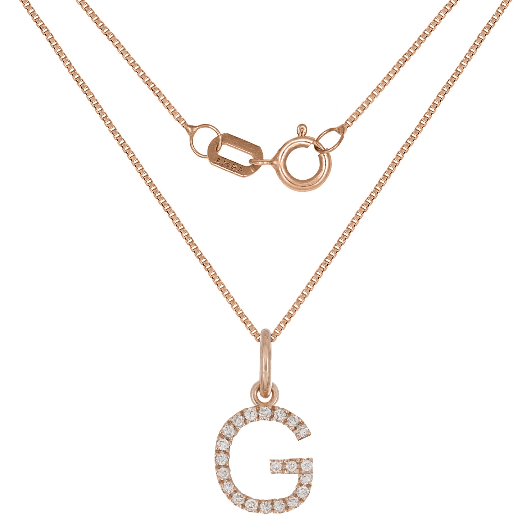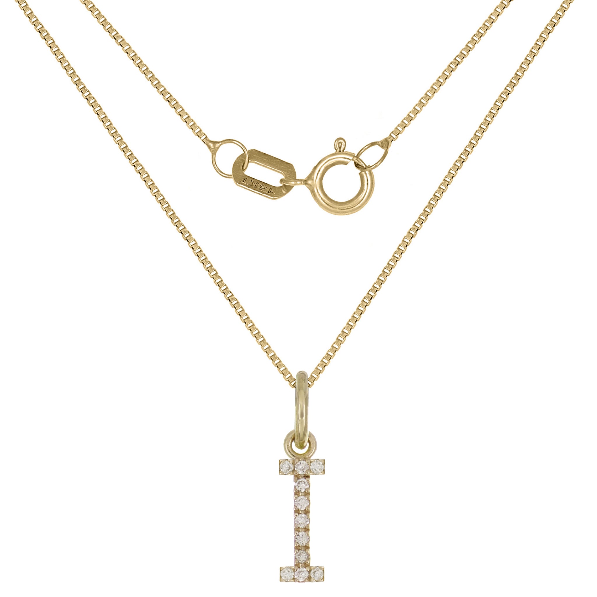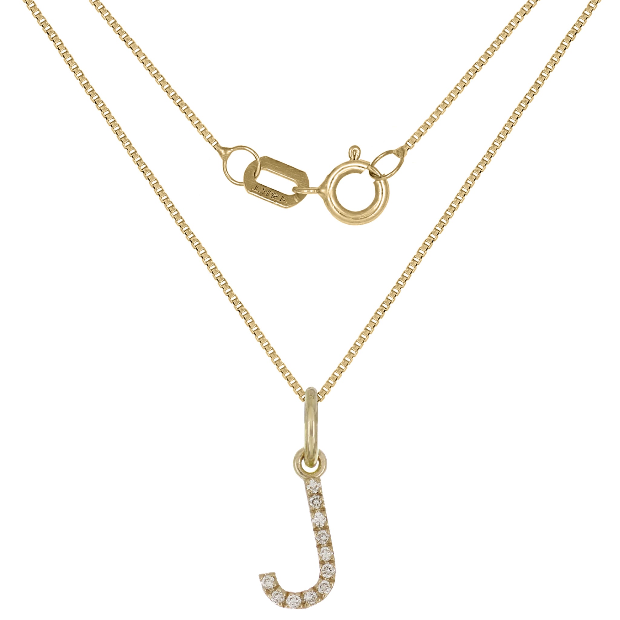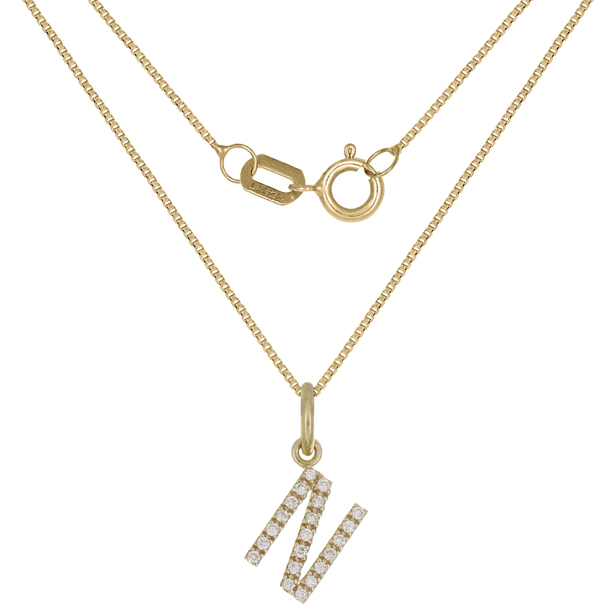 14k Yellow White or Rose Gold Diamond Initial Letter Charm Pendant Necklace 18"