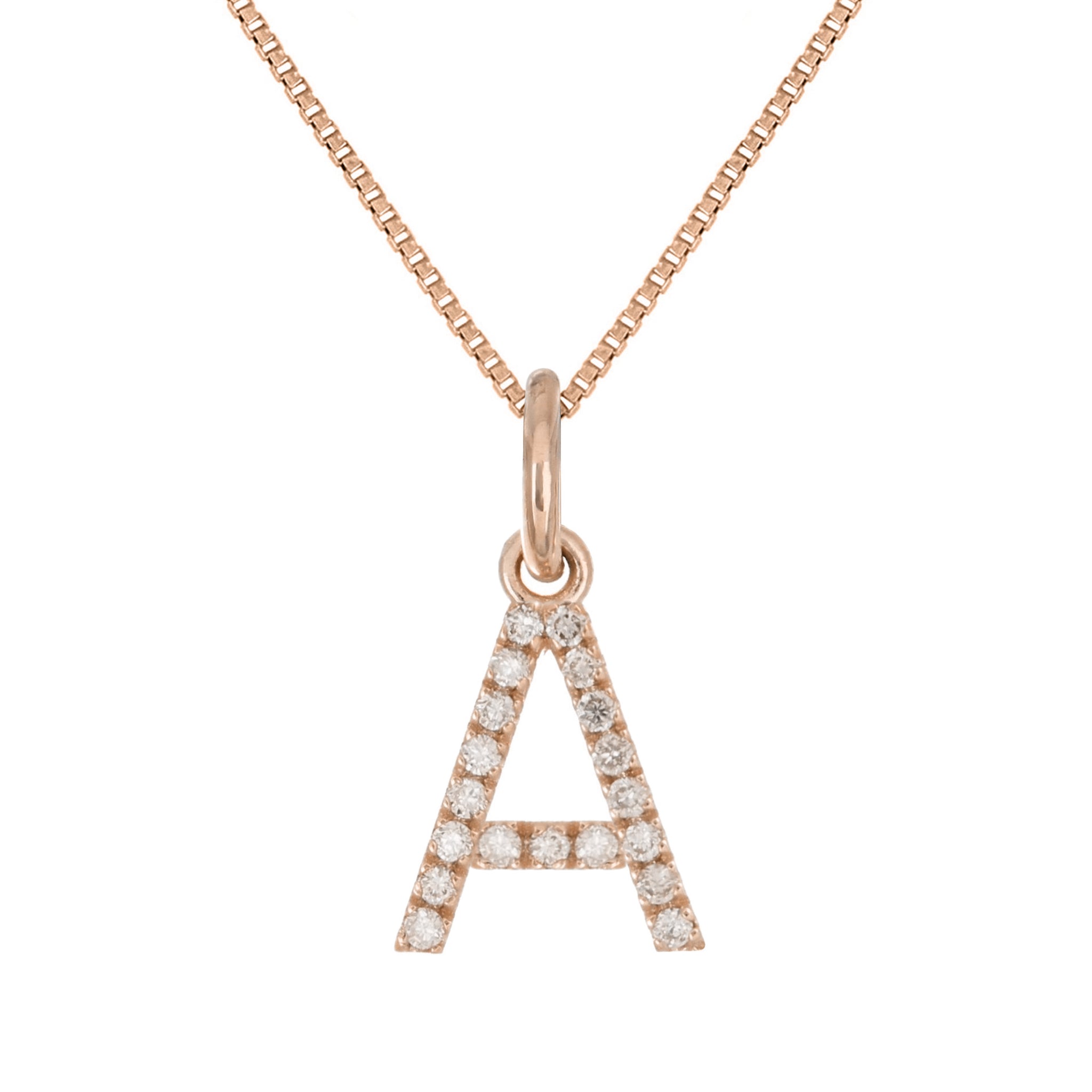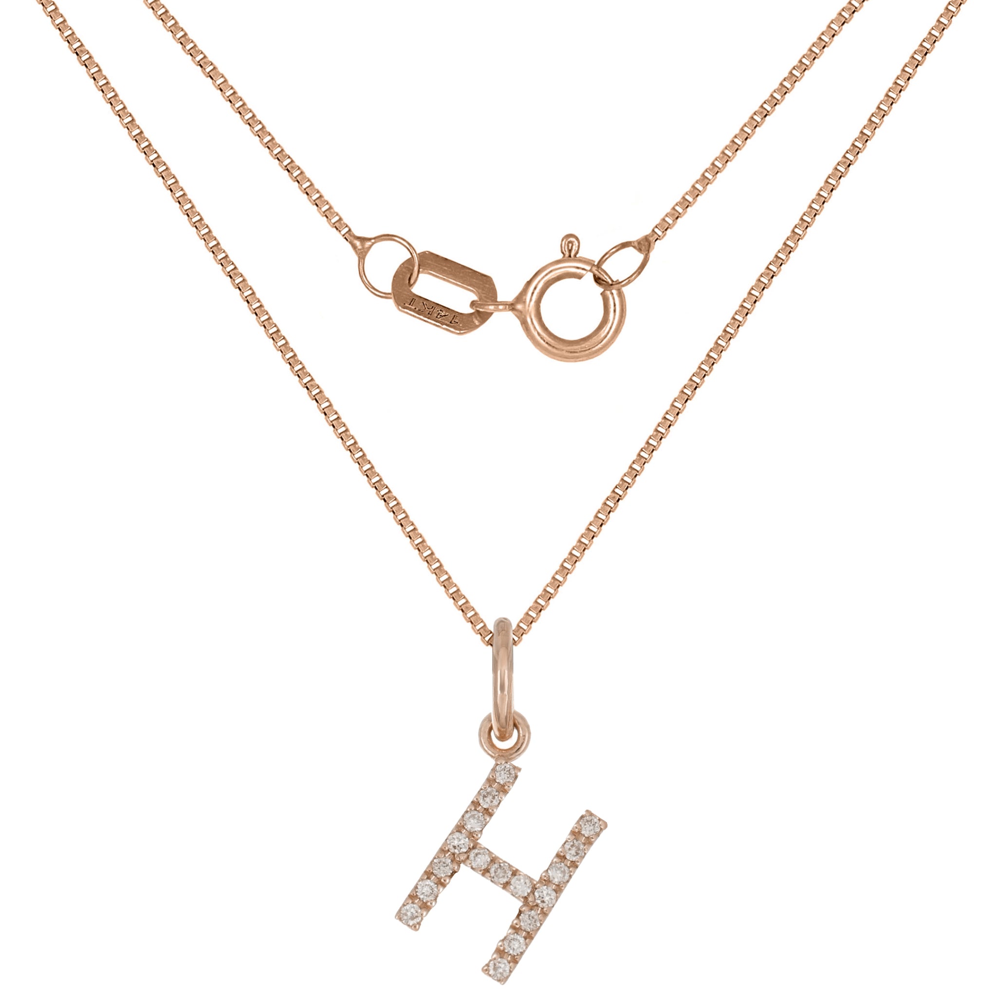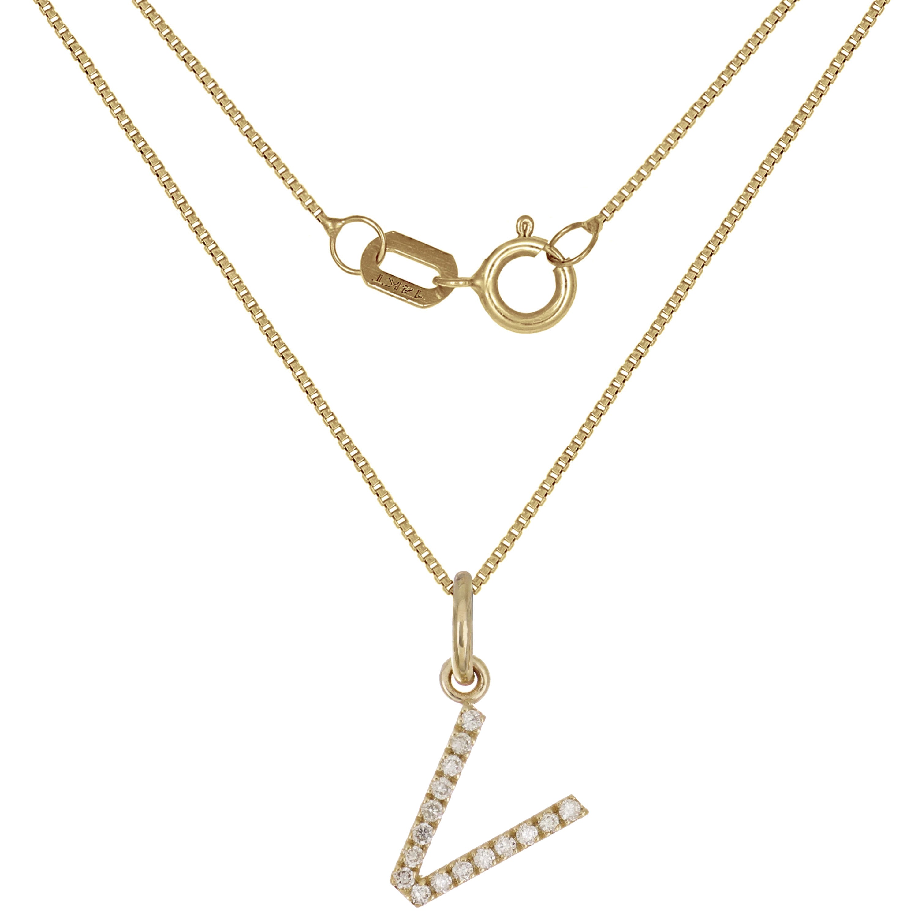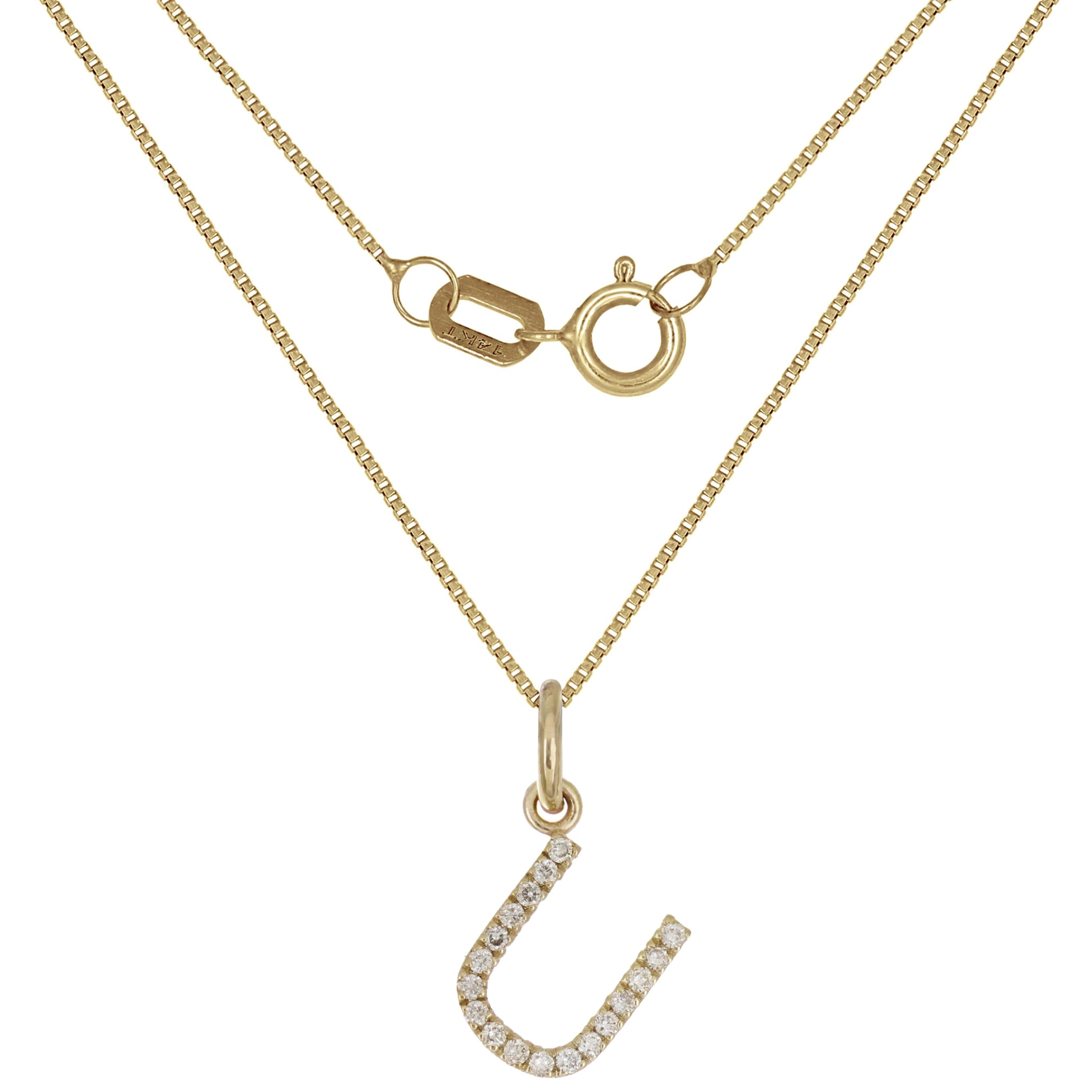 14k Yellow White or Rose Gold Diamond Initial Letter Charm Pendant Necklace 18"
