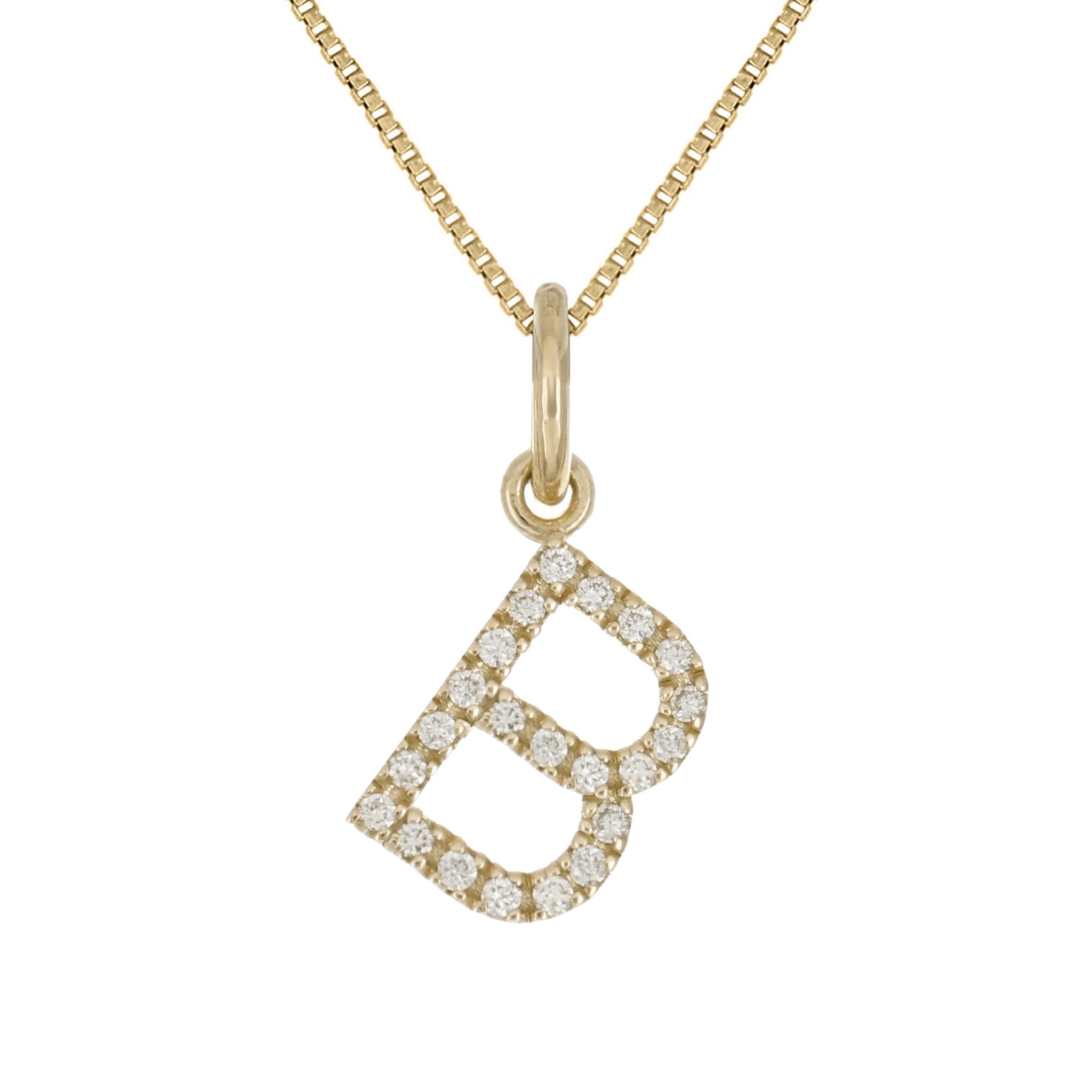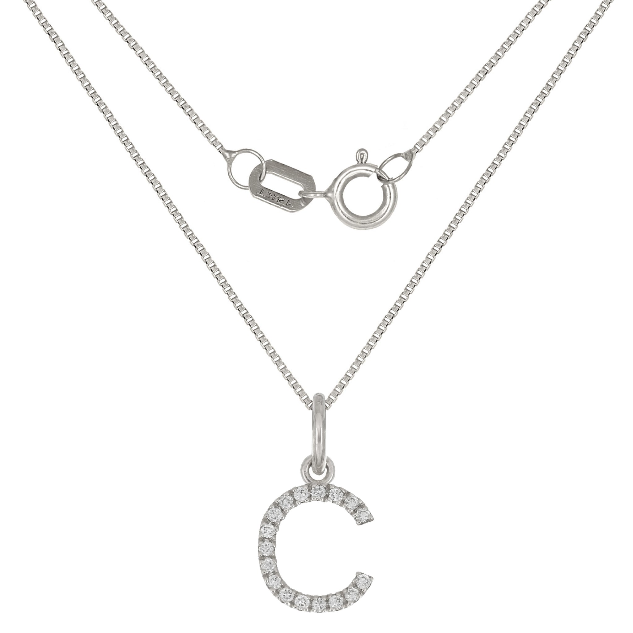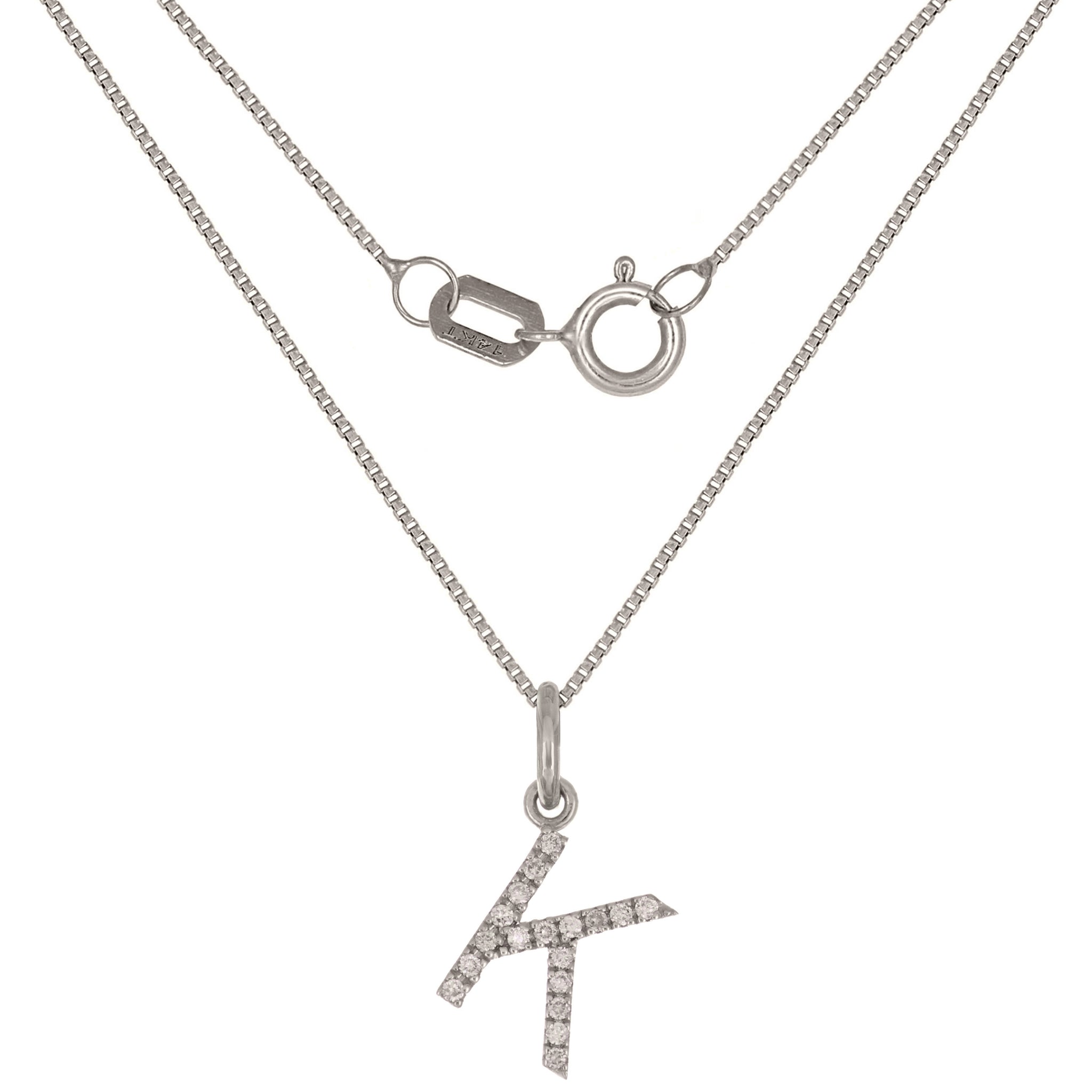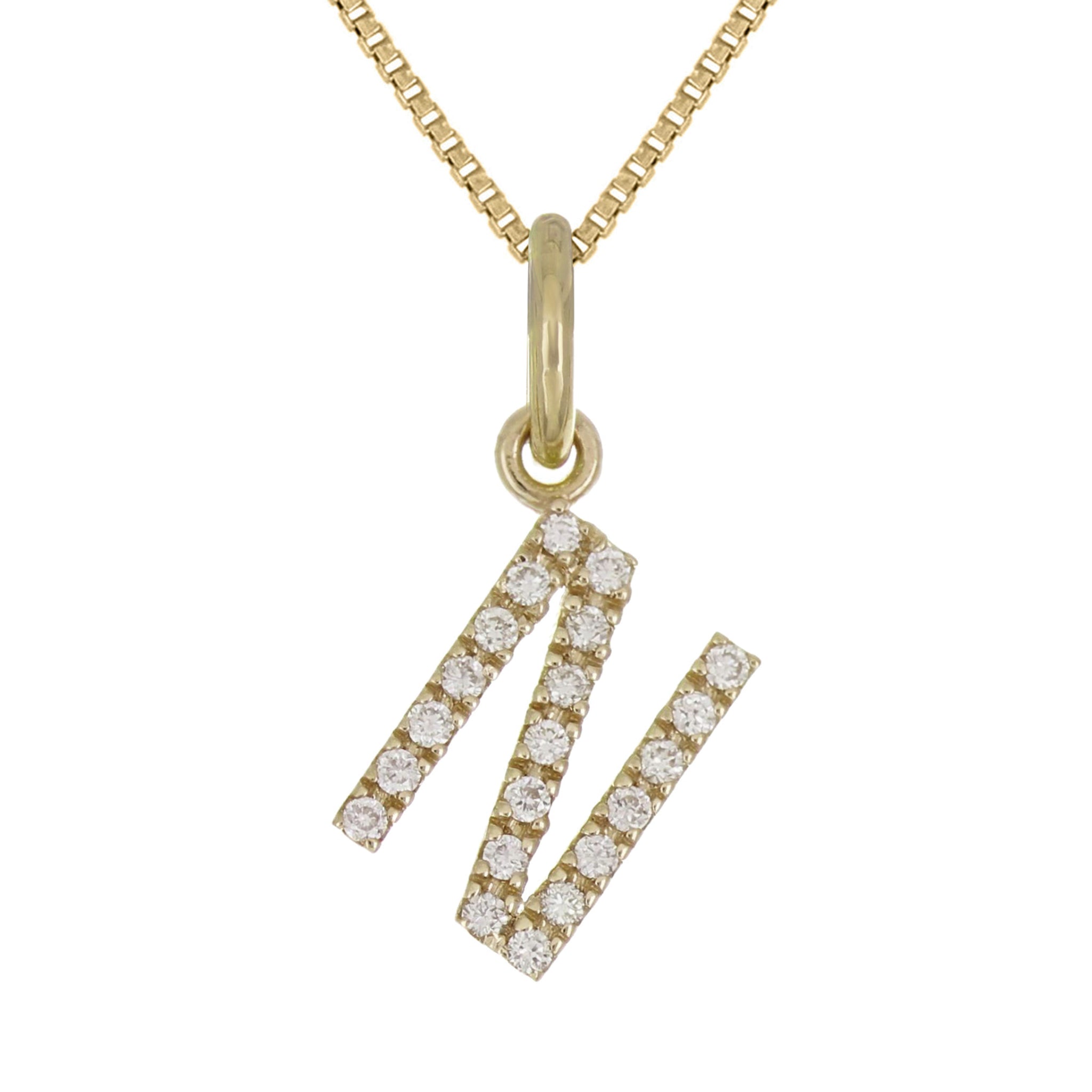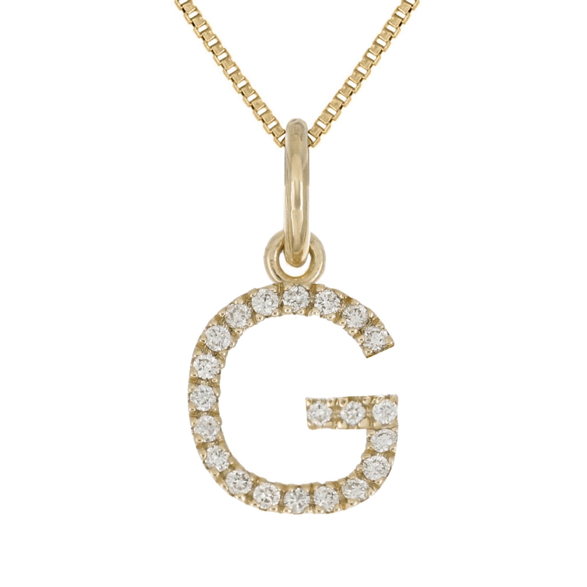 14k Yellow White or Rose Gold Diamond Initial Letter Charm Pendant Necklace 18"