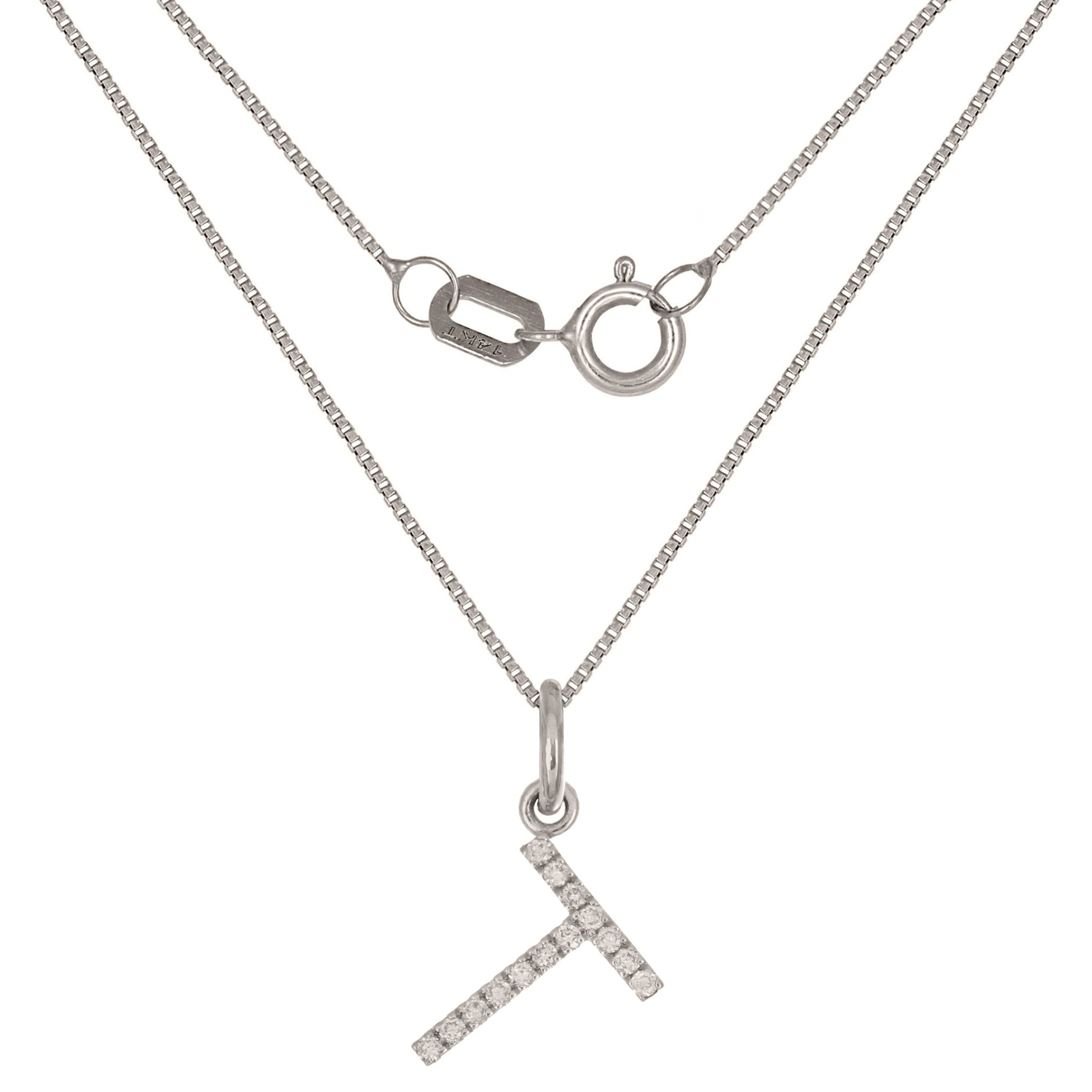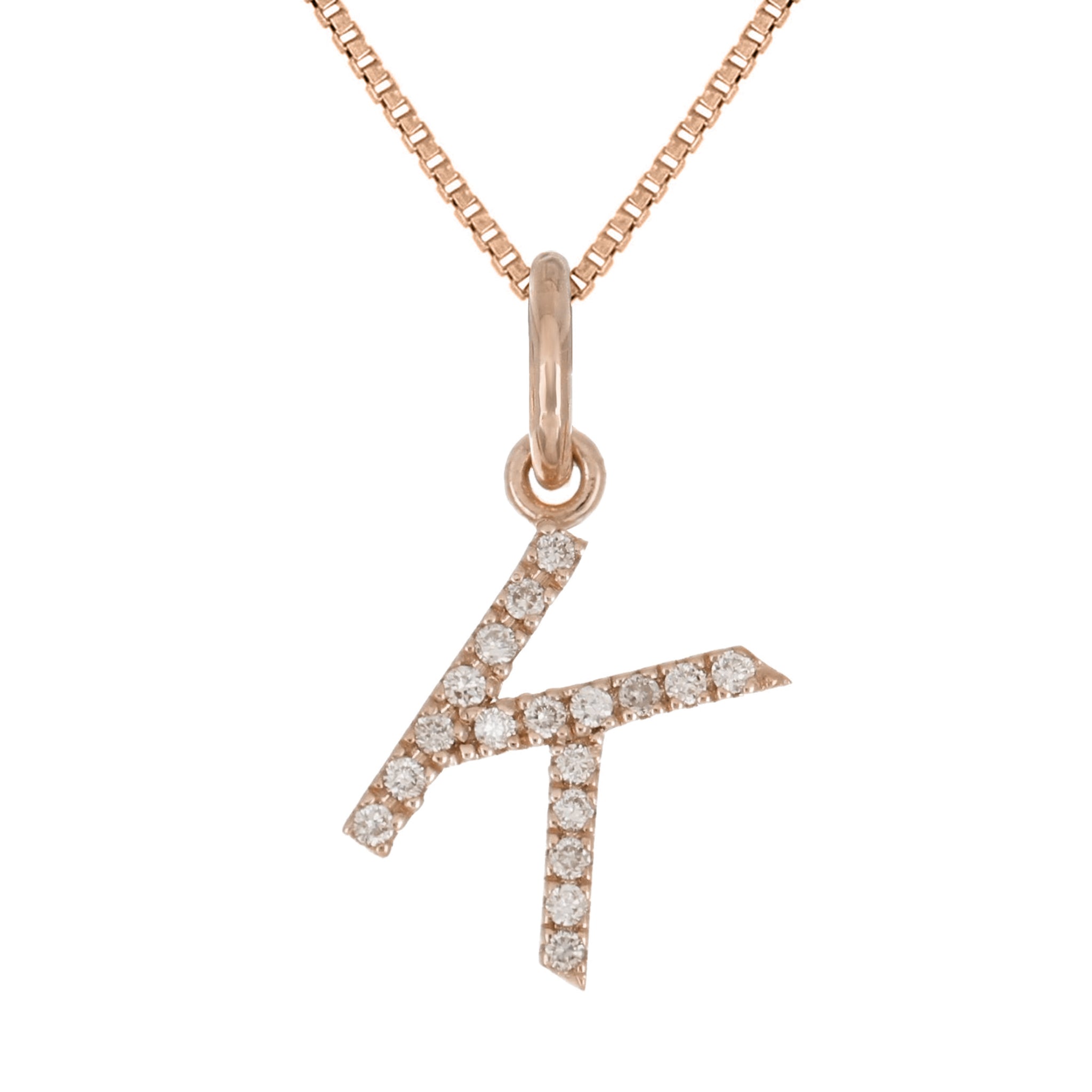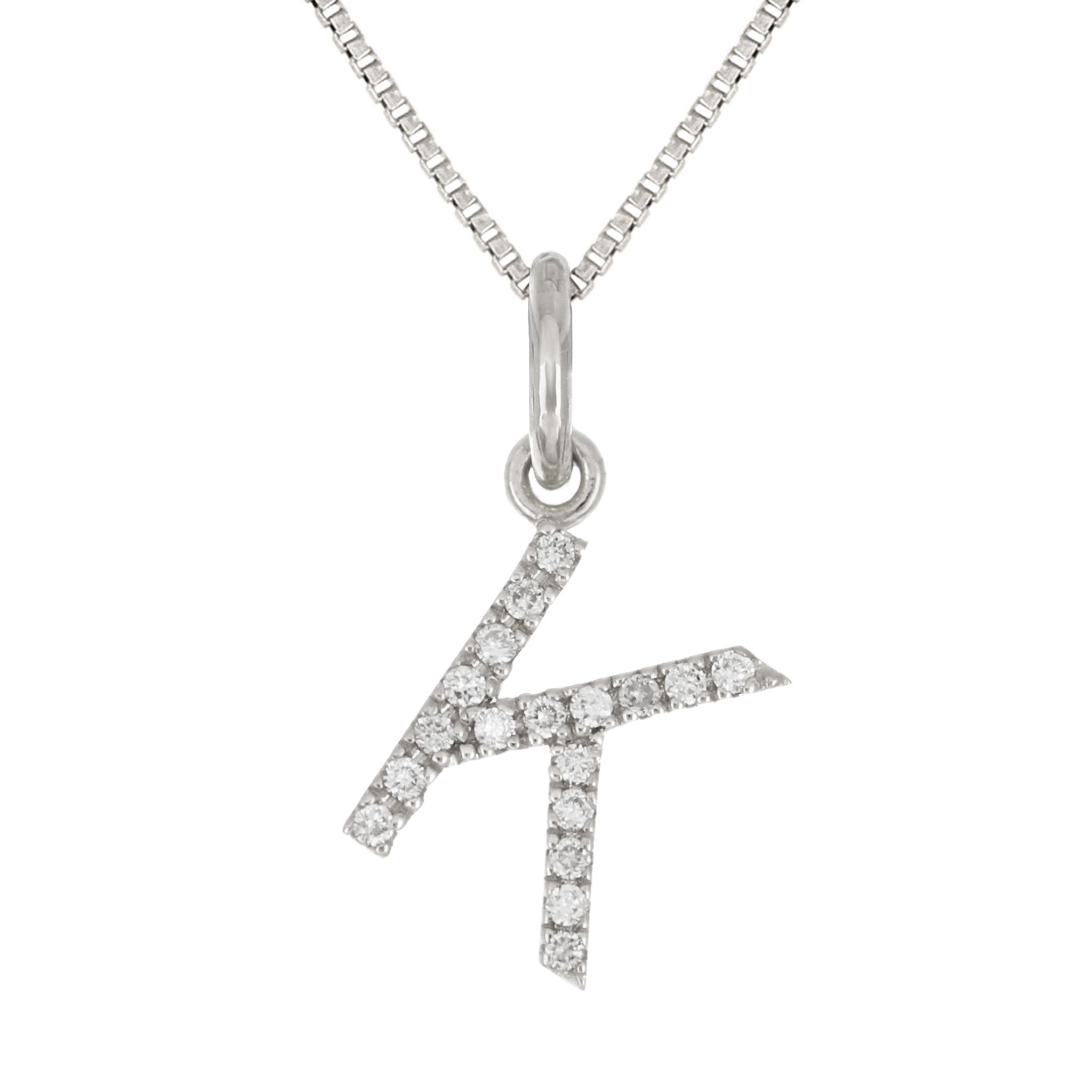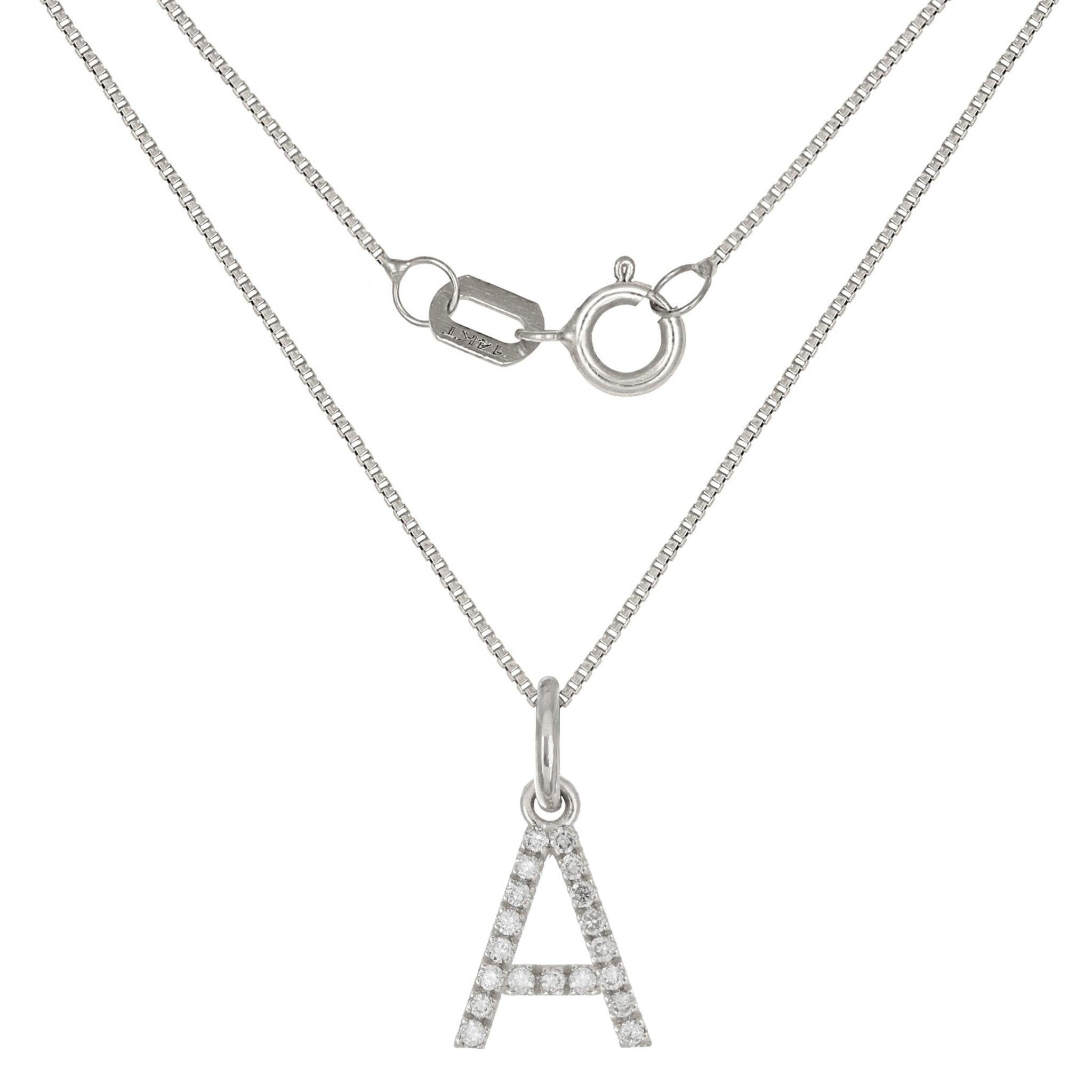 14k Yellow White or Rose Gold Diamond Initial Letter Charm Pendant Necklace 18"