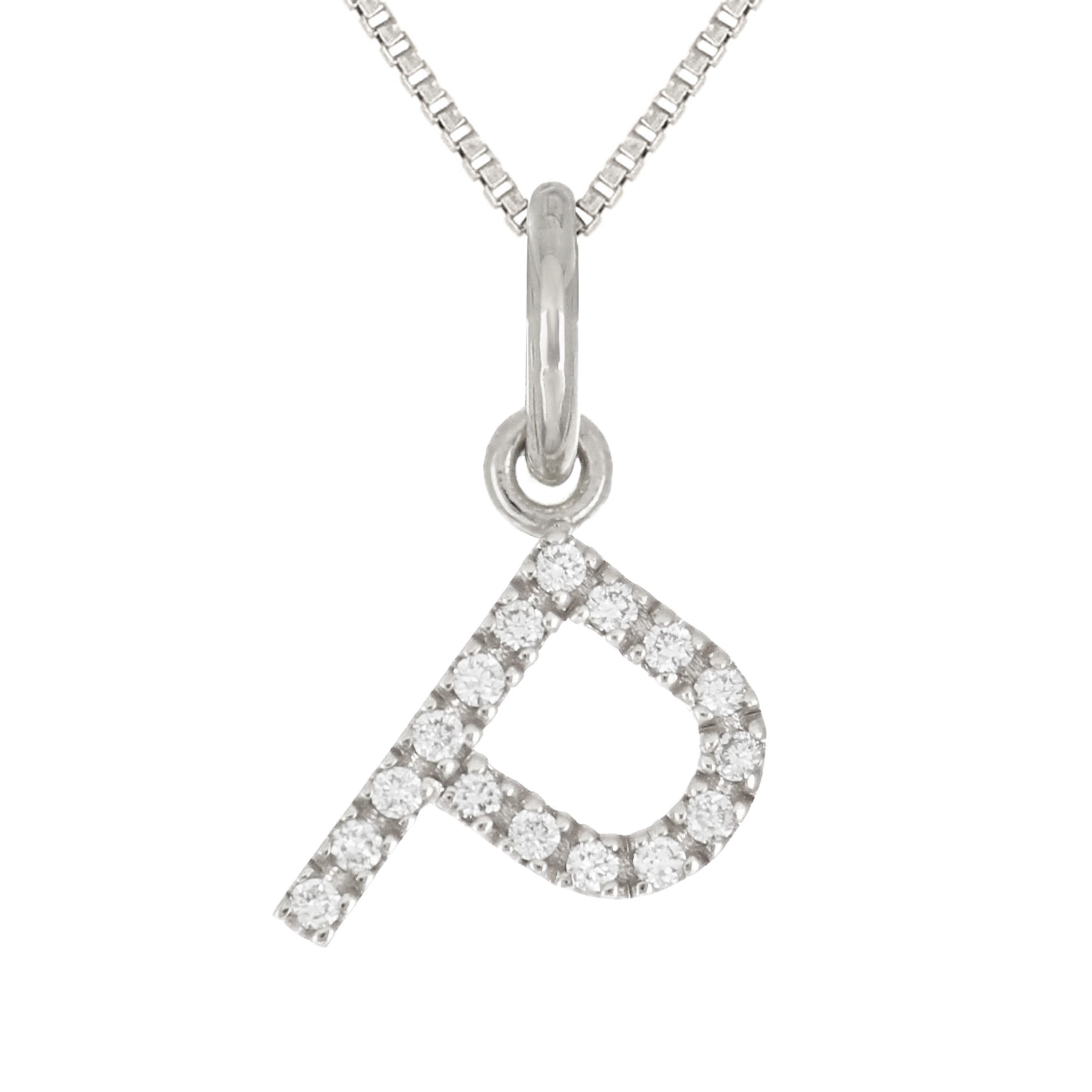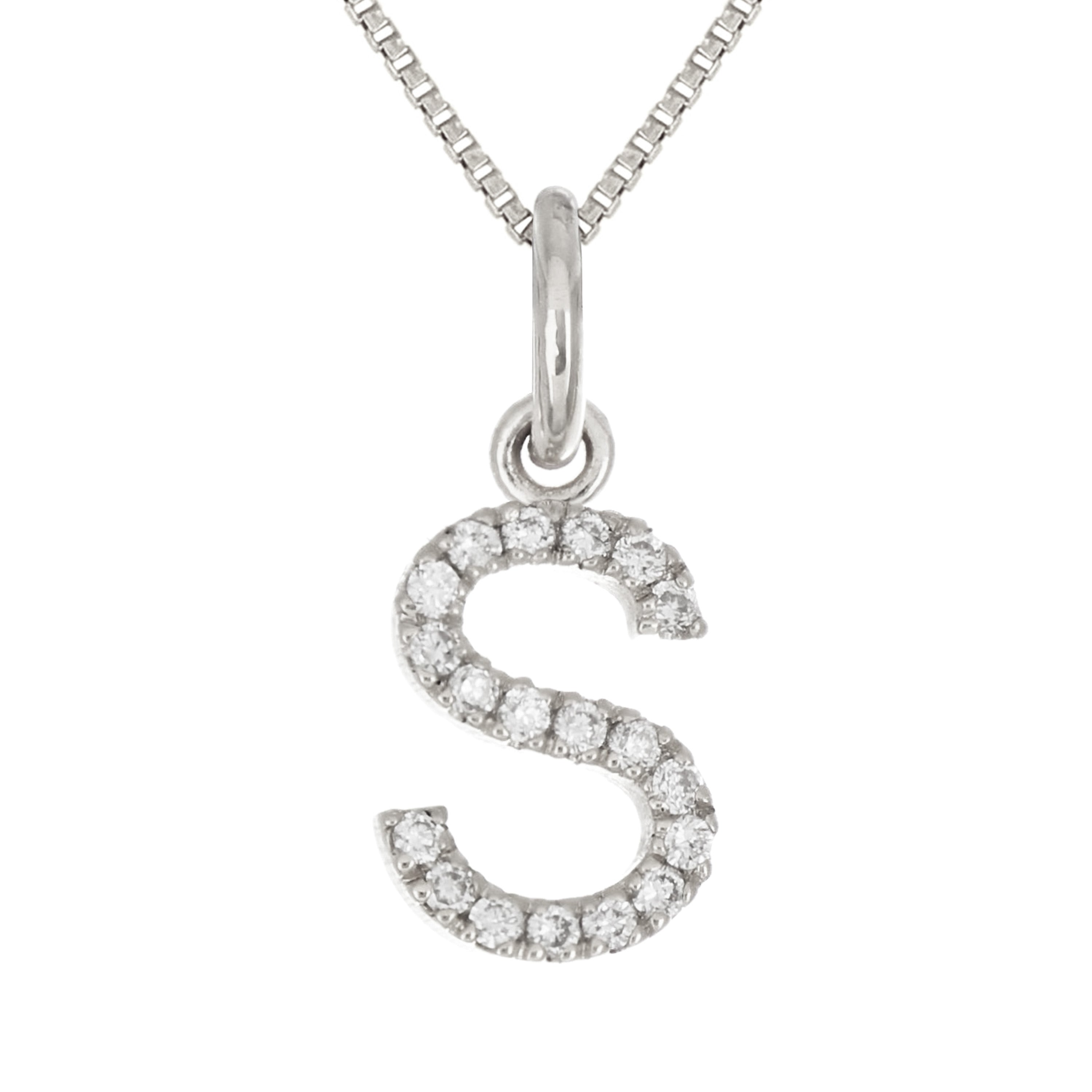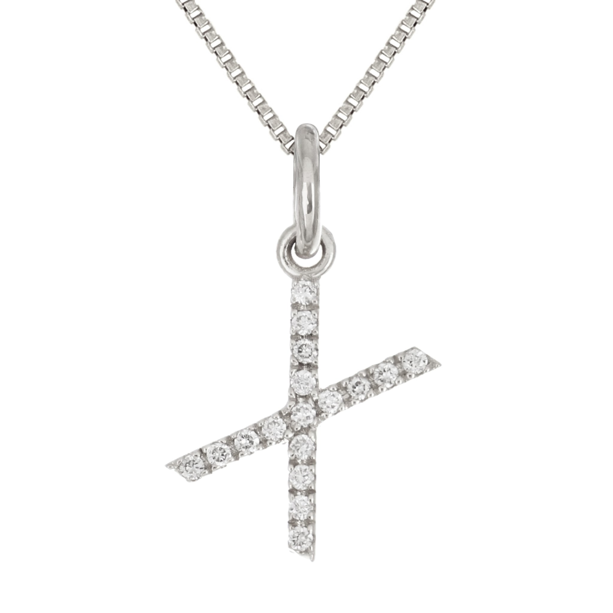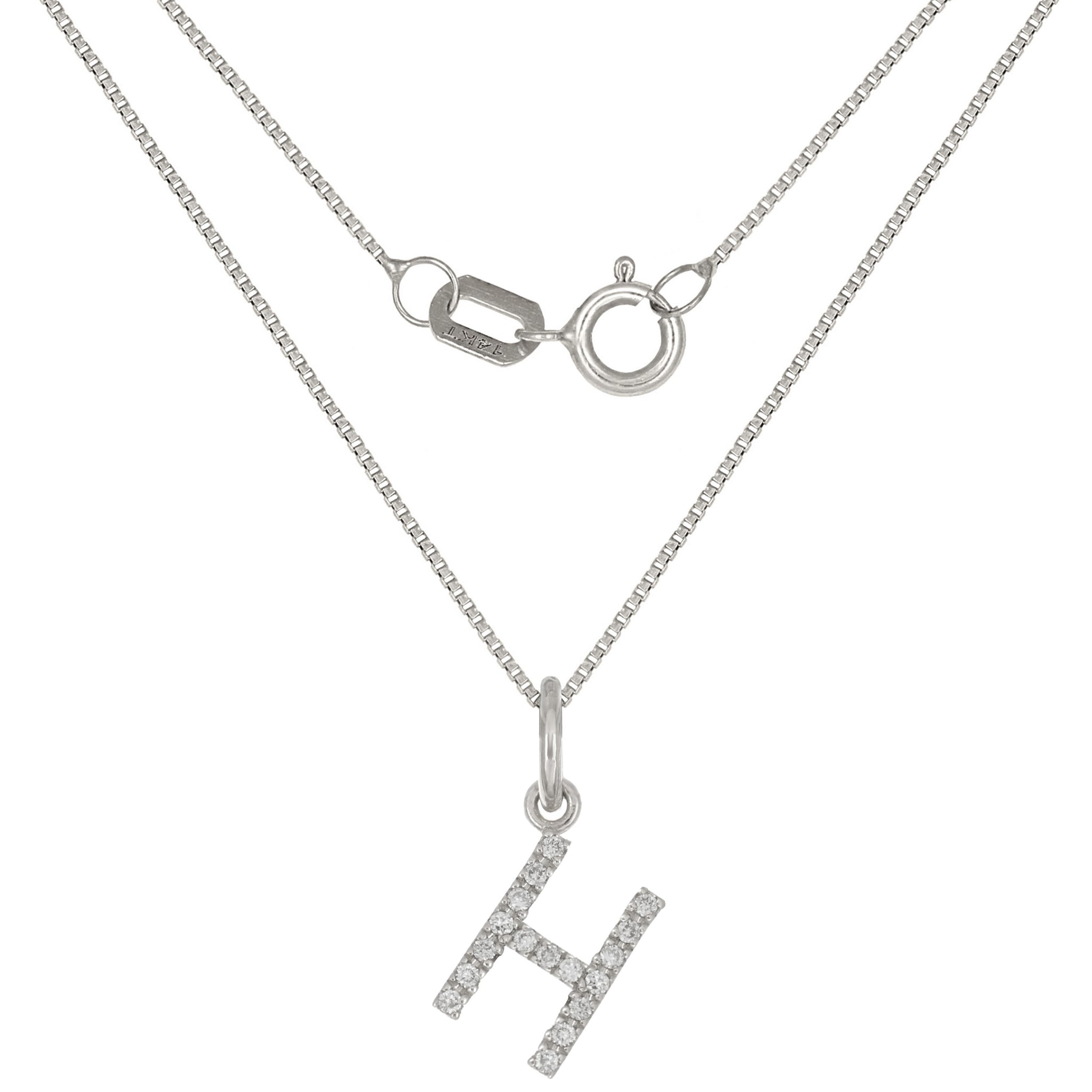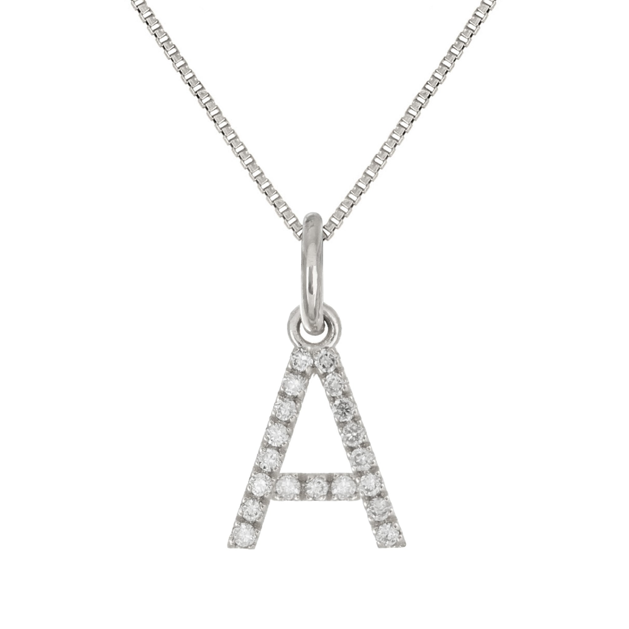 14k Yellow White or Rose Gold Diamond Initial Letter Charm Pendant Necklace 18"