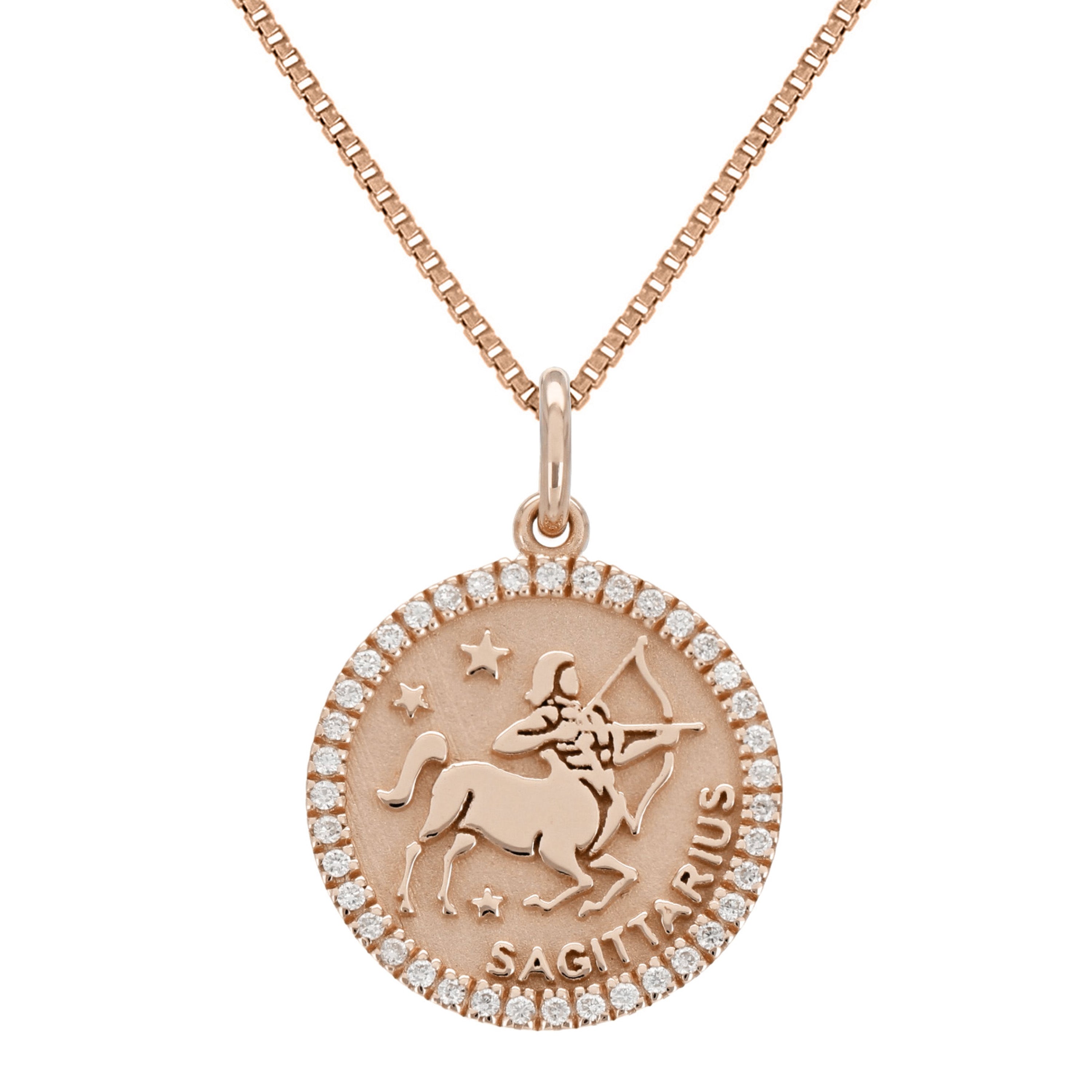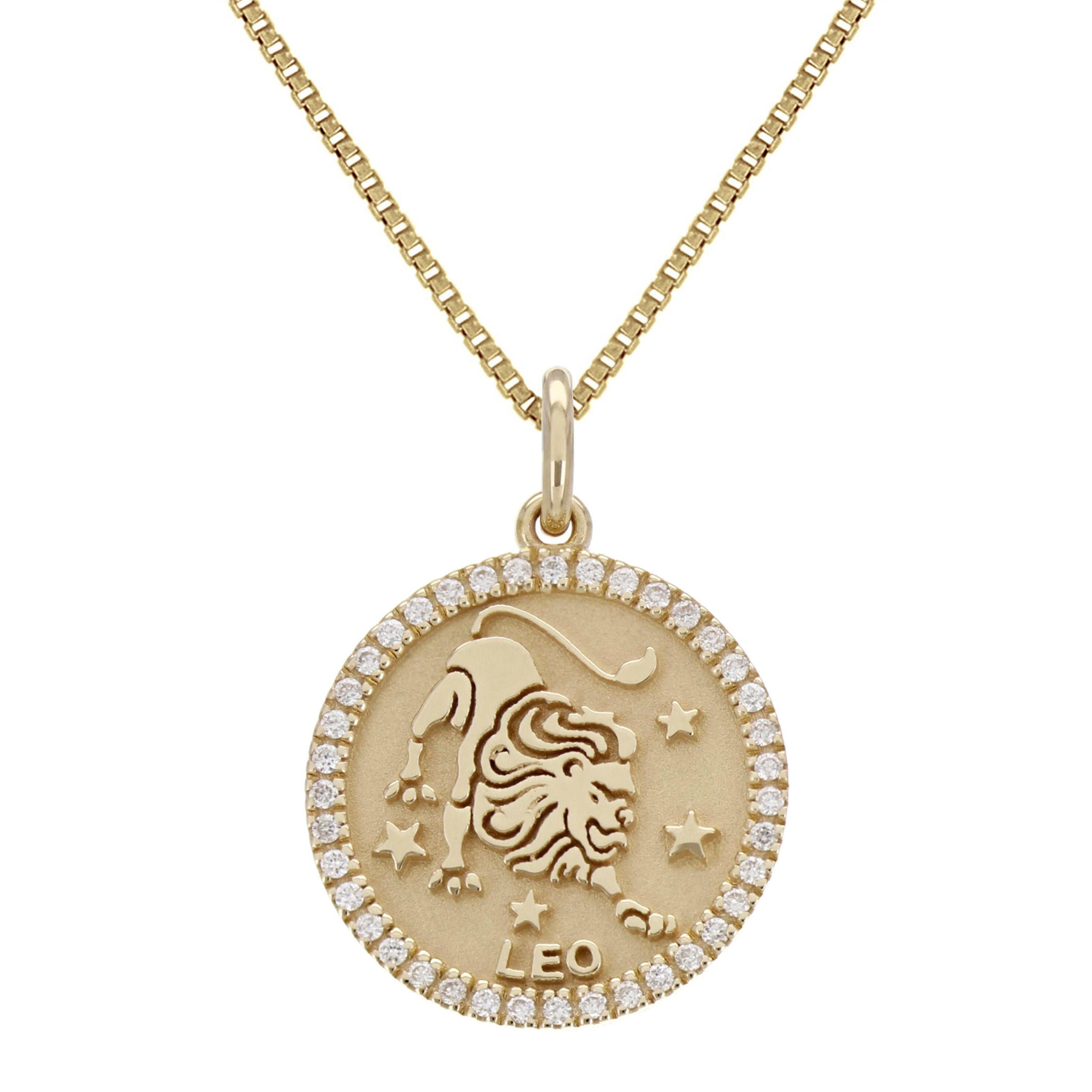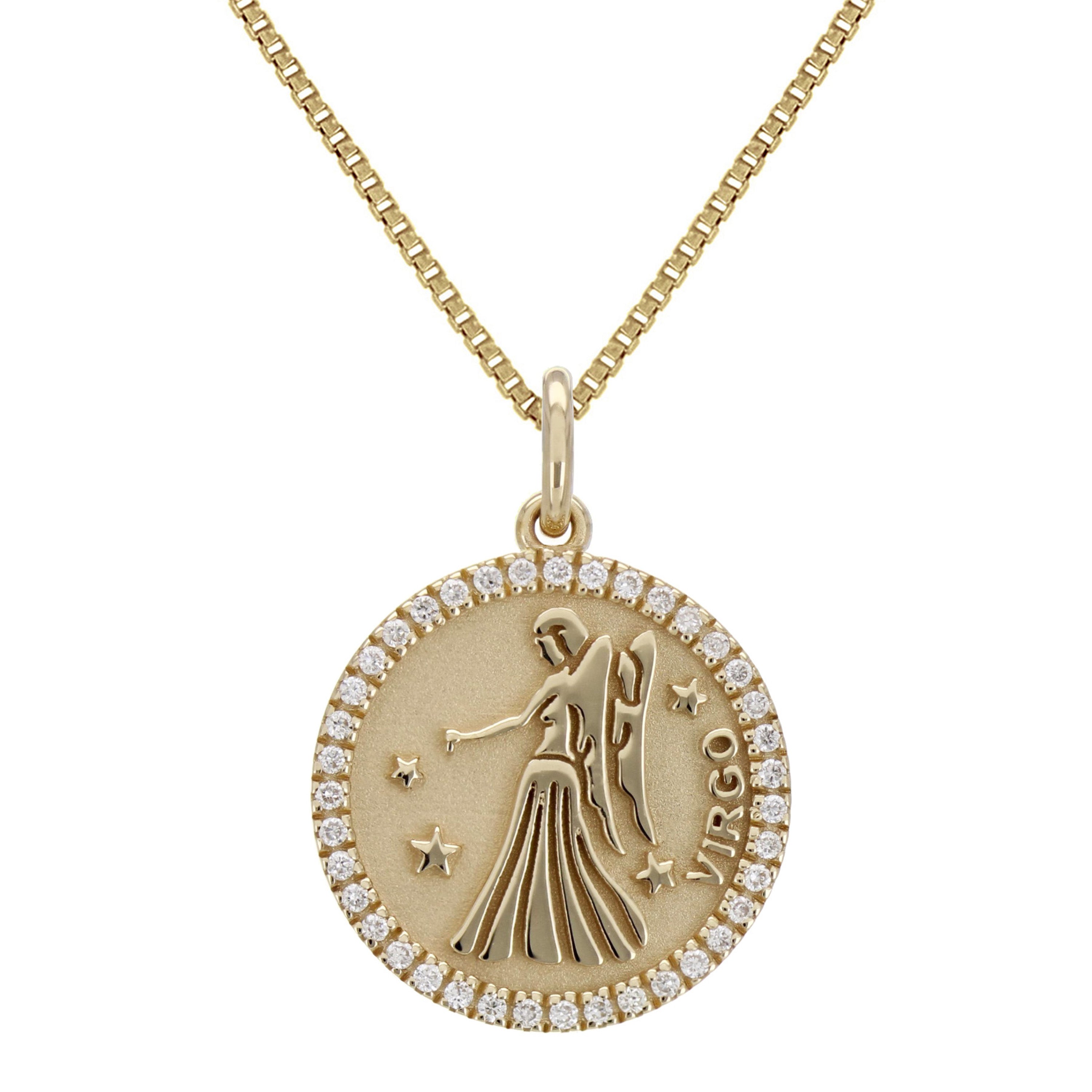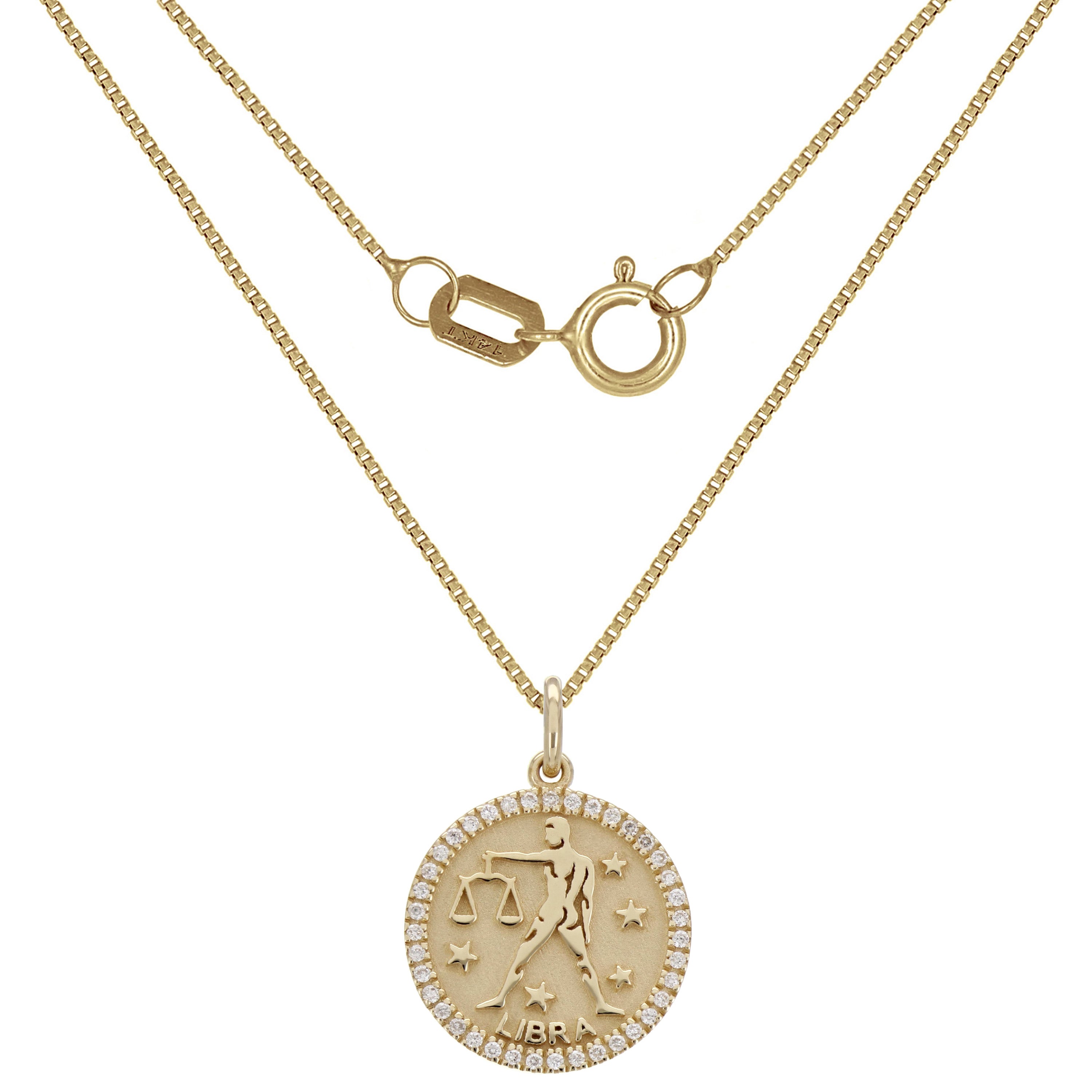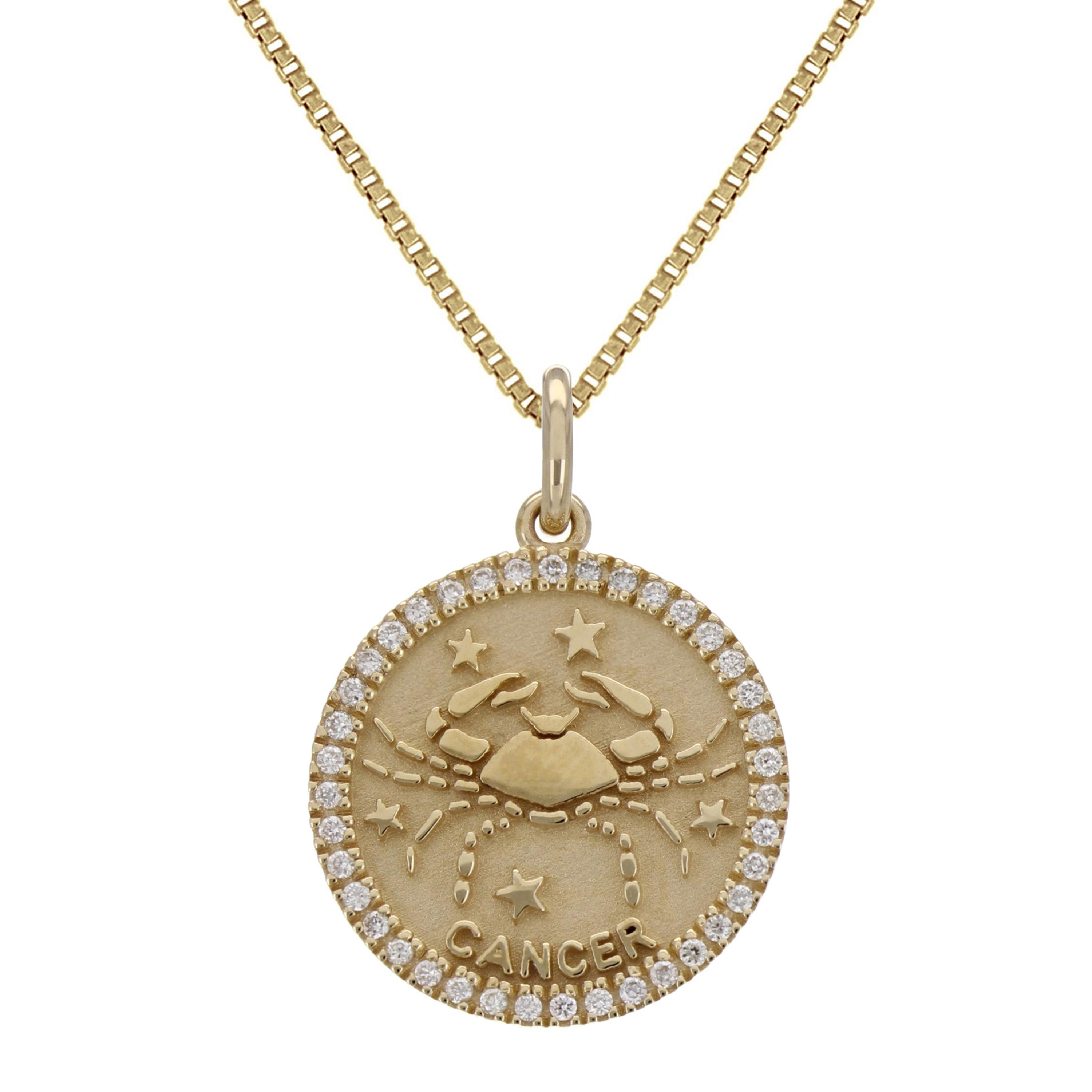 14k Yellow White or Rose Gold Diamond Zodiac Sign Pendant Necklace 18"
