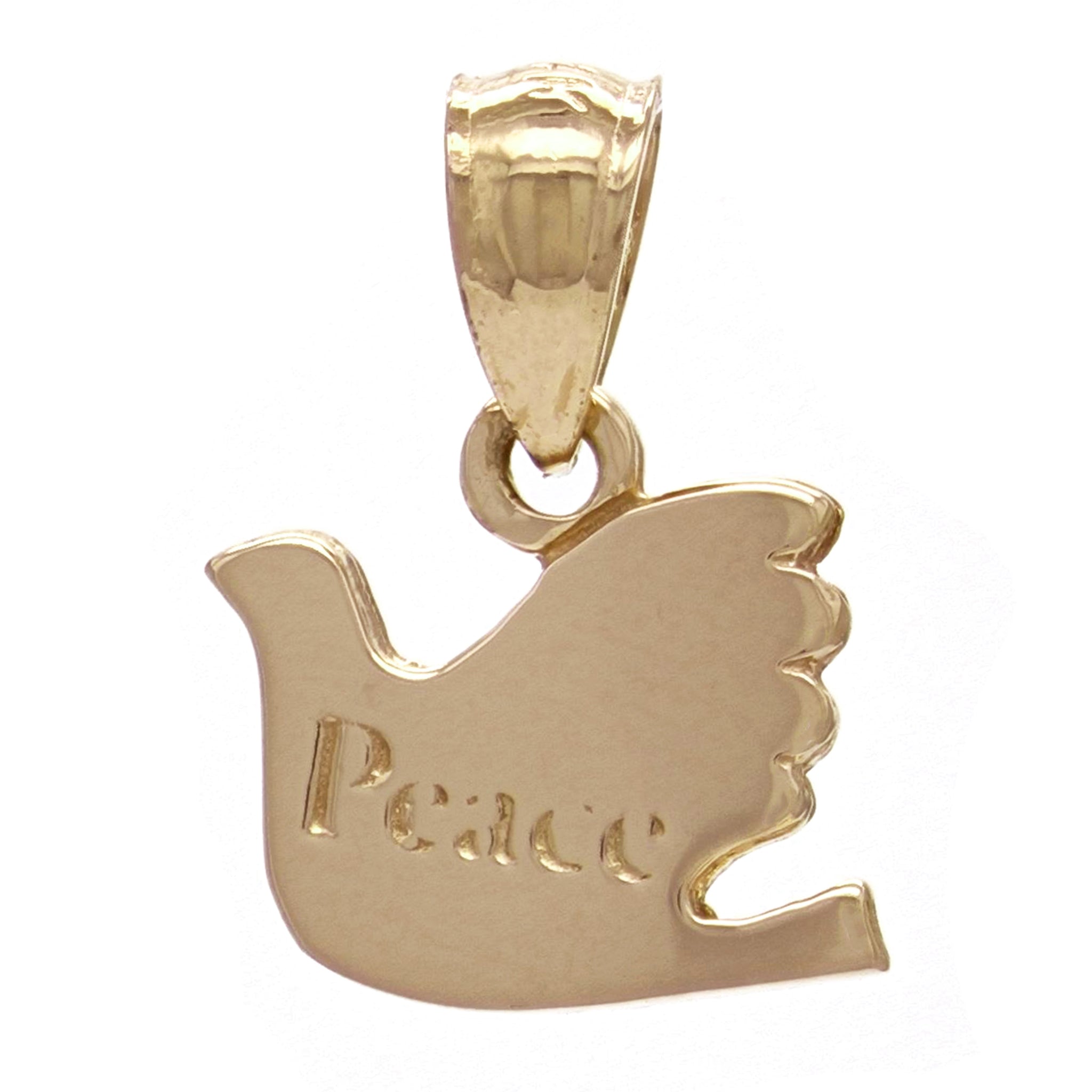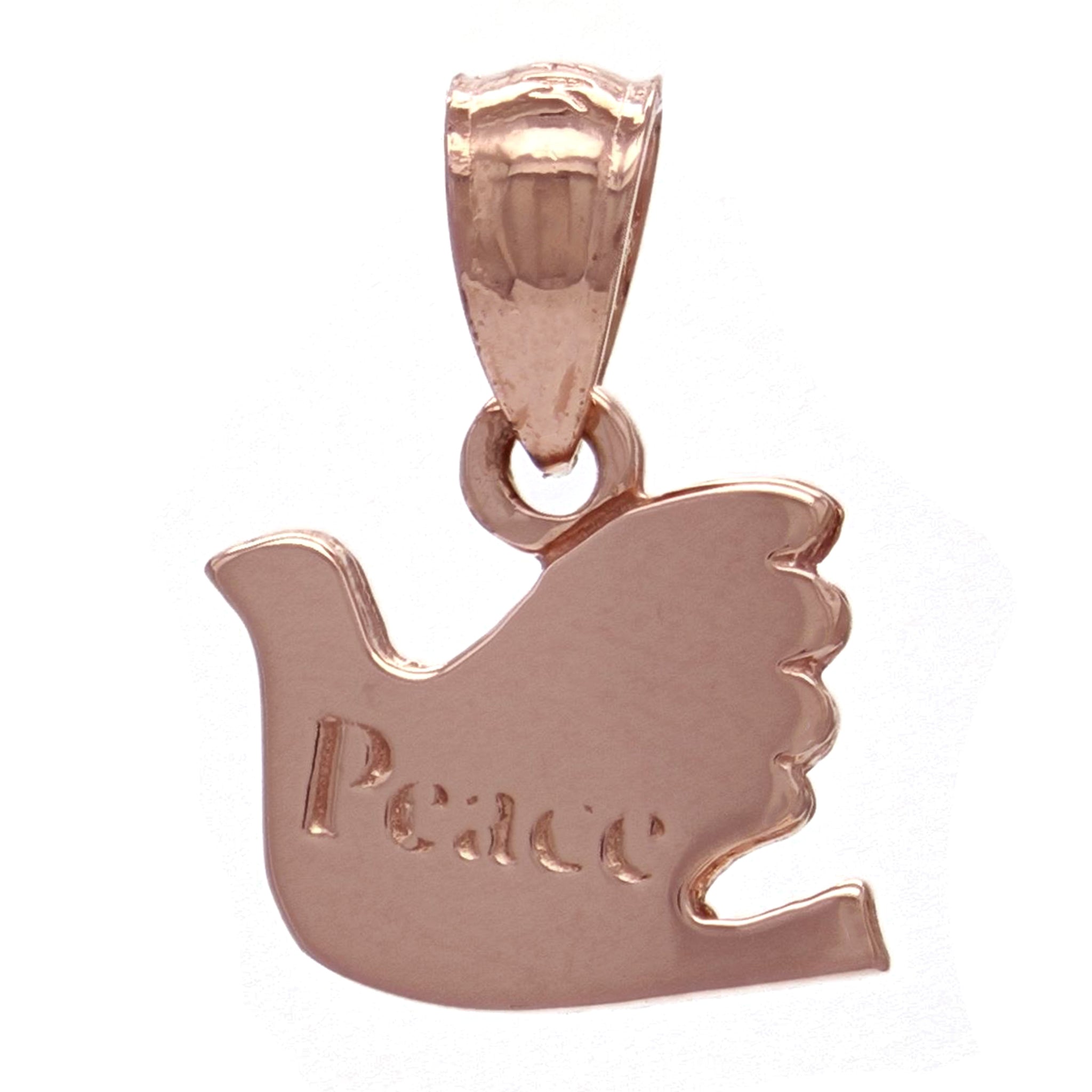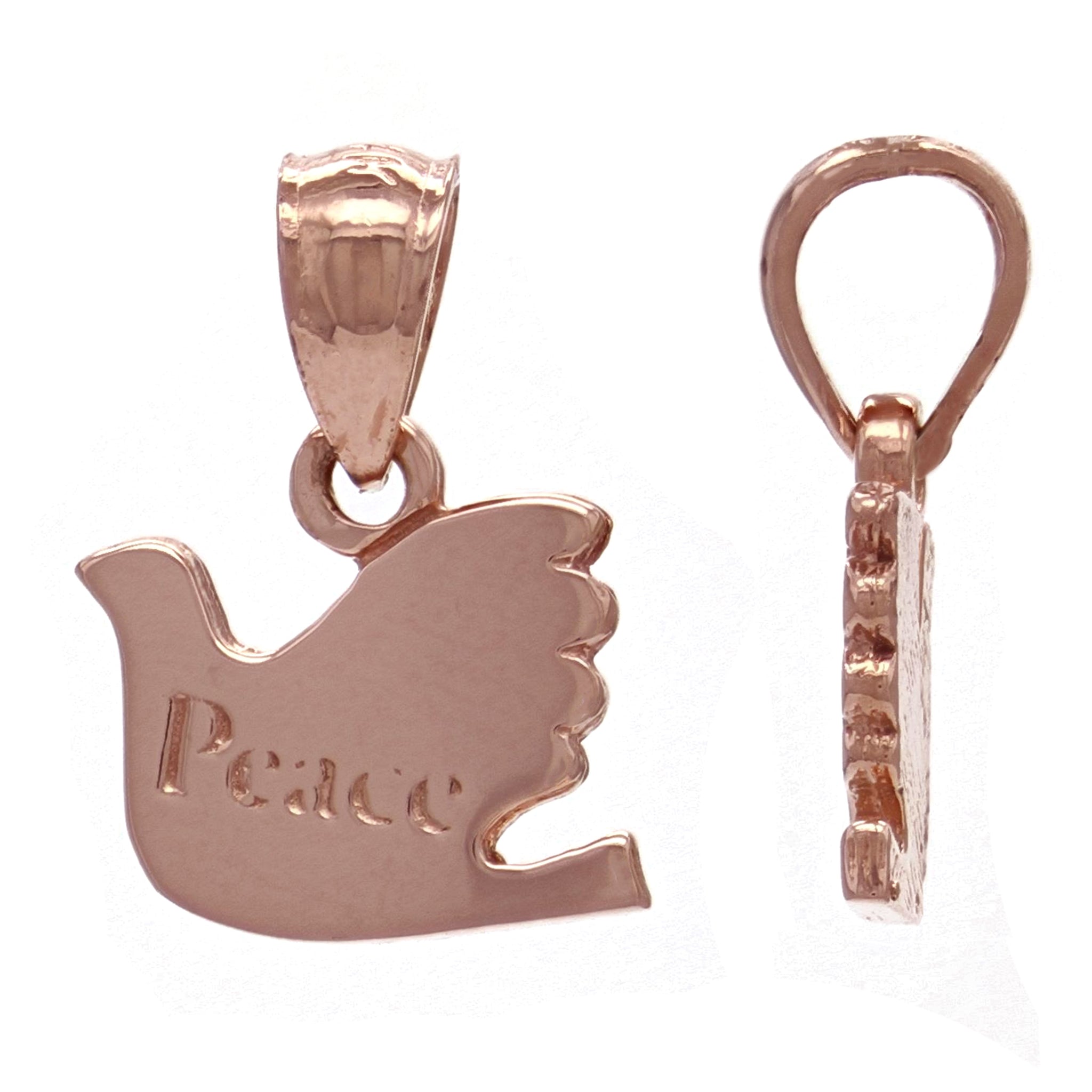 14k Yellow White or Rose Gold Peace Dove Charm Pendant
