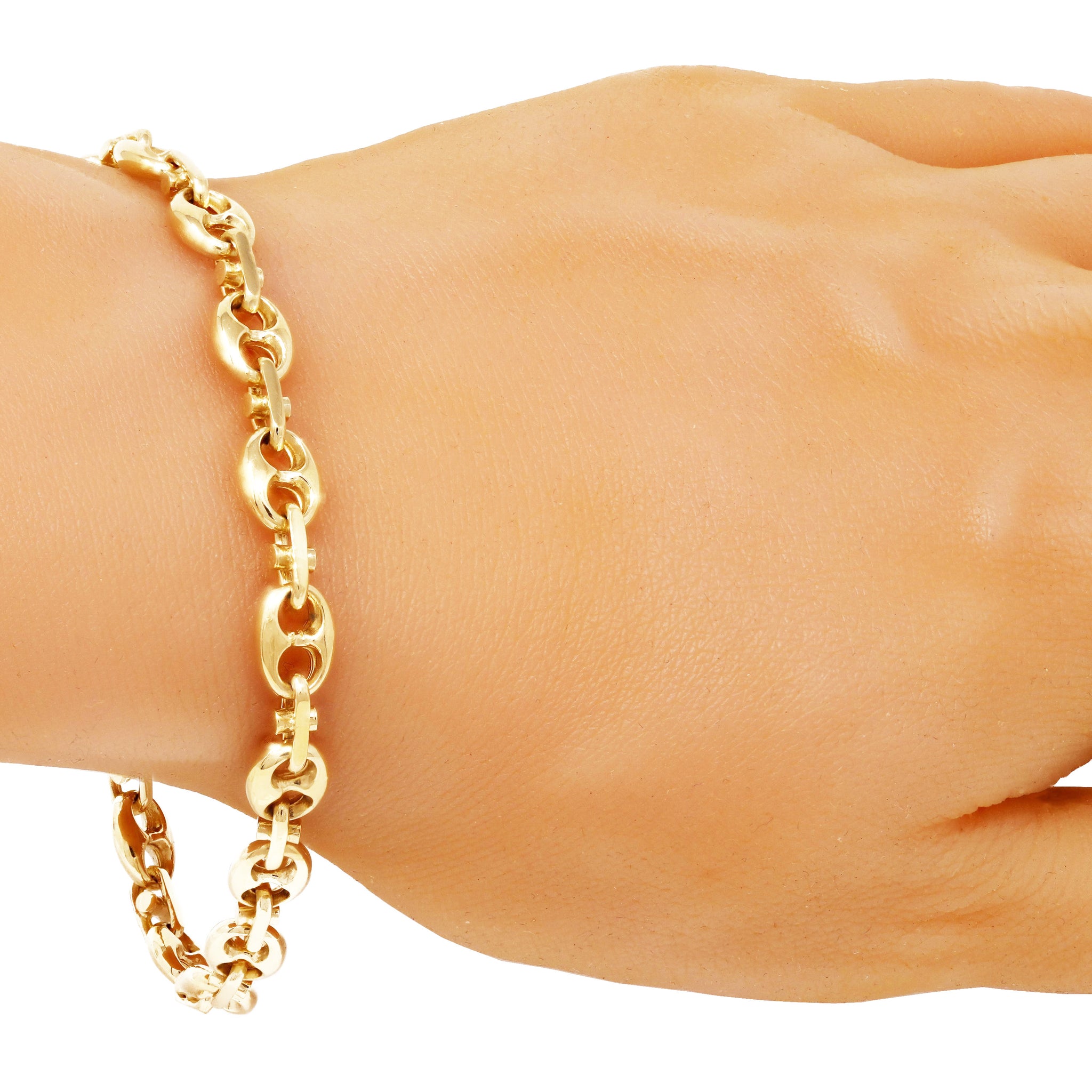 14k Yellow White or Rose Gold Solid Puffy Mariner Chain Gucci Bracelet 7" - 9" 7.5mm