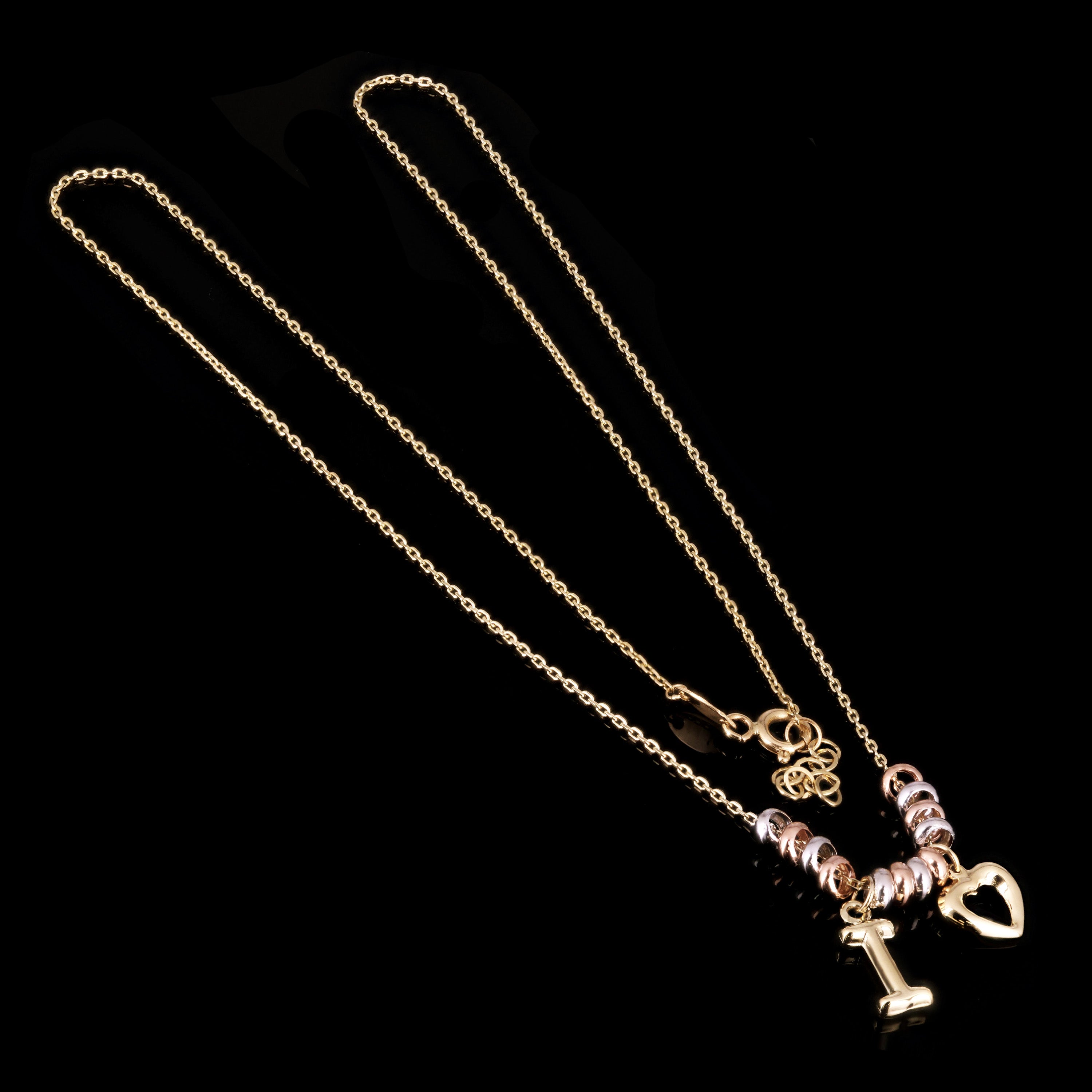 Italian 14k Tri Color Gold I Heart Ring Charm Pendant Necklace 17.5" 2.6 grams
