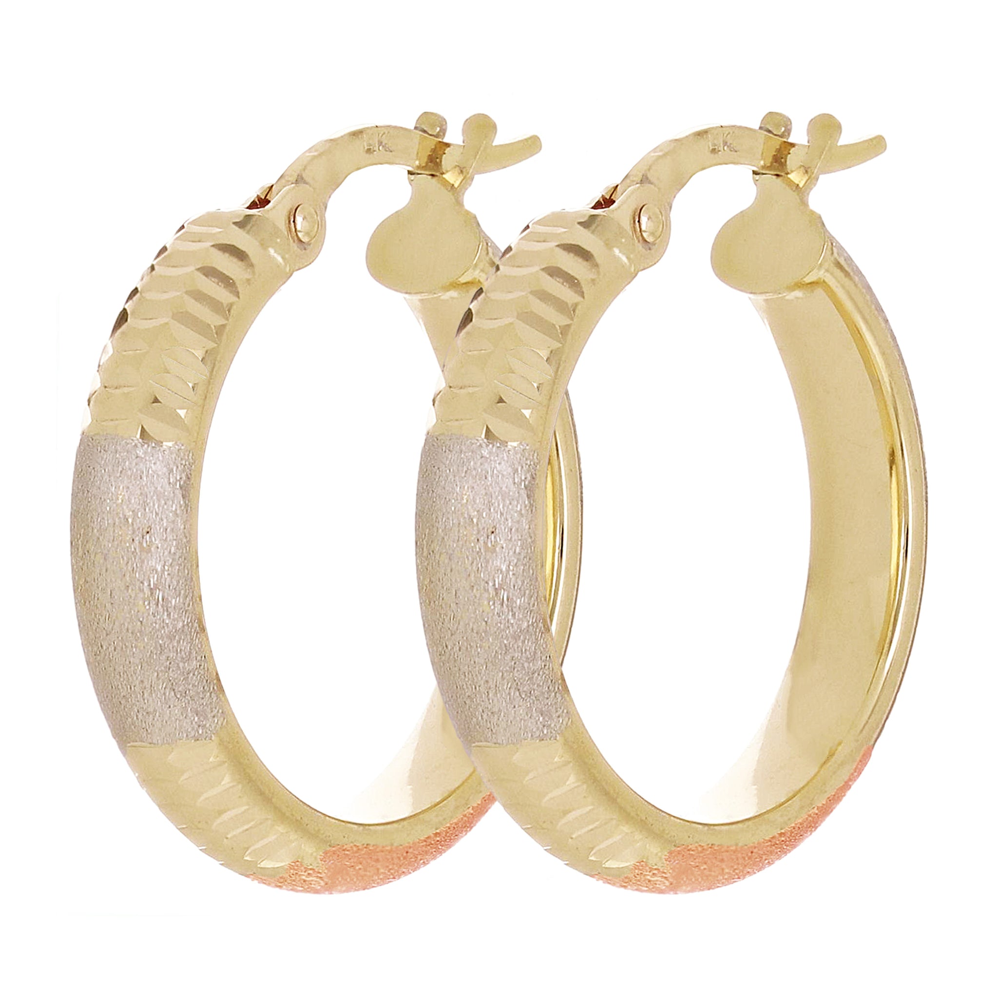 Italian 14k Tri-Color Gold Satin & Diamond Cut Hoop Earrings 20mmx3.8mm 2 grams