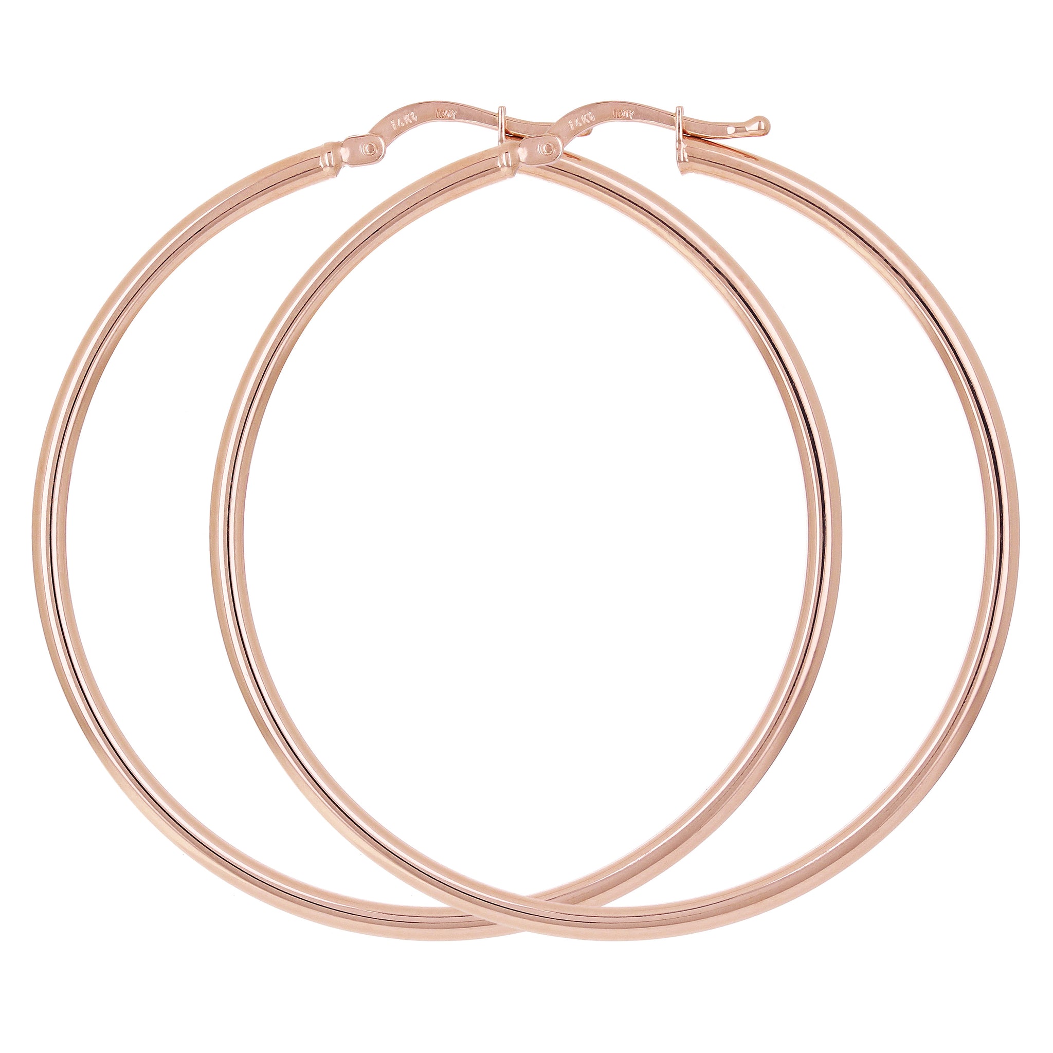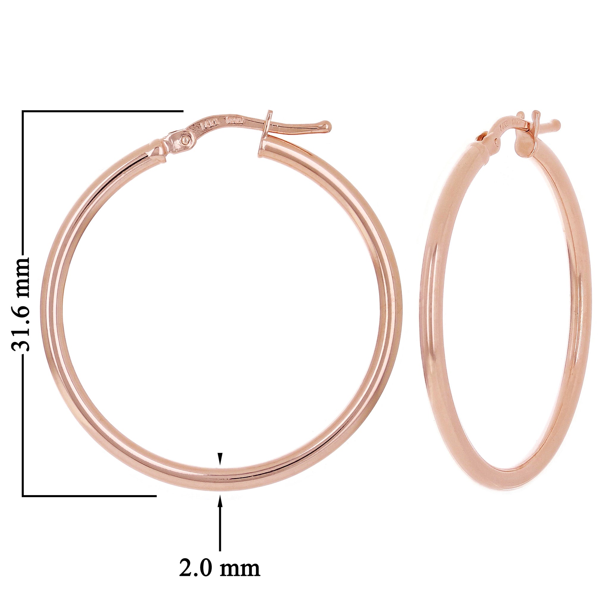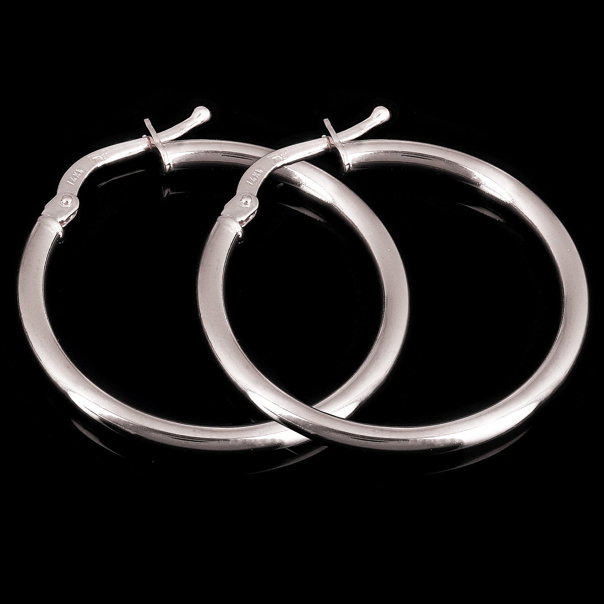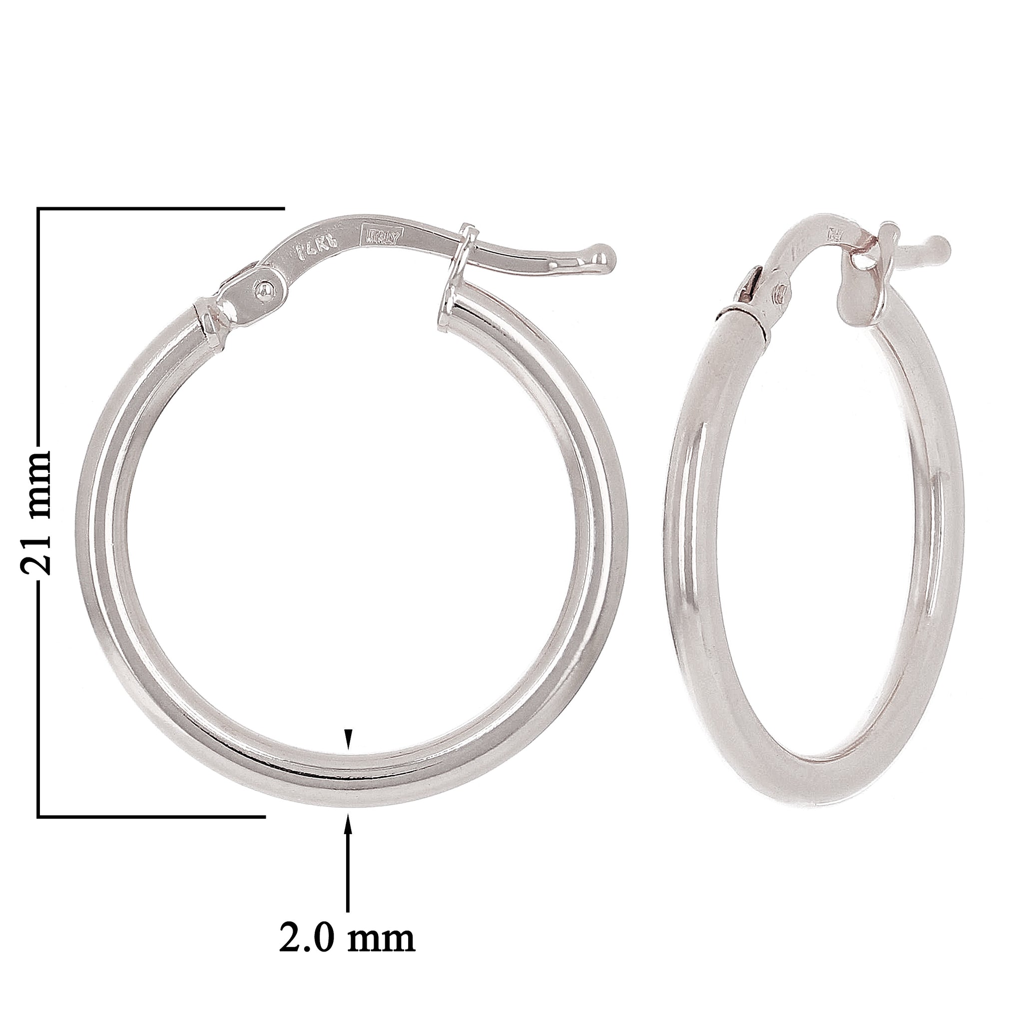 Italian 14k White or Rose Gold High Polished Plain Hollow Hoop Earrings Various Sizes