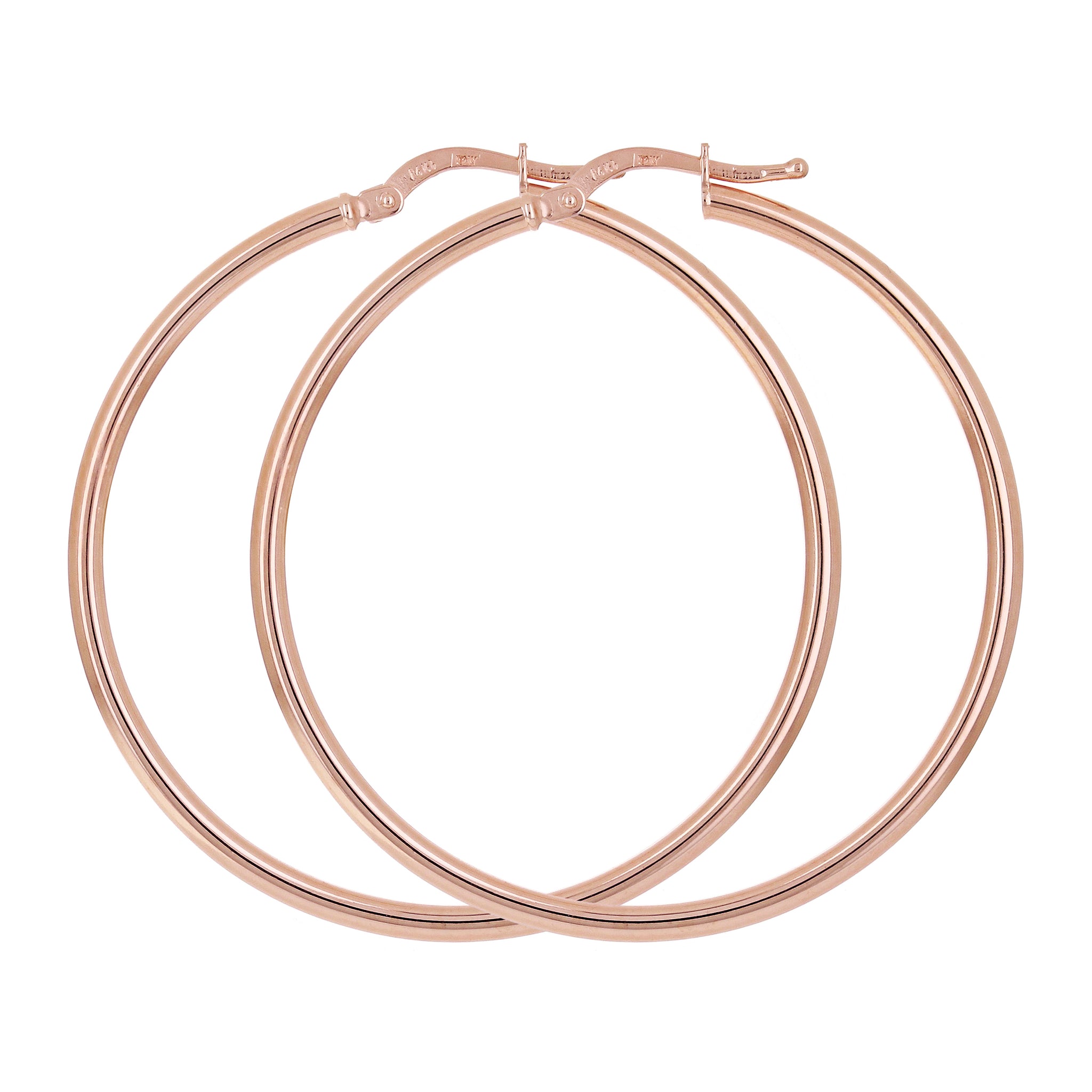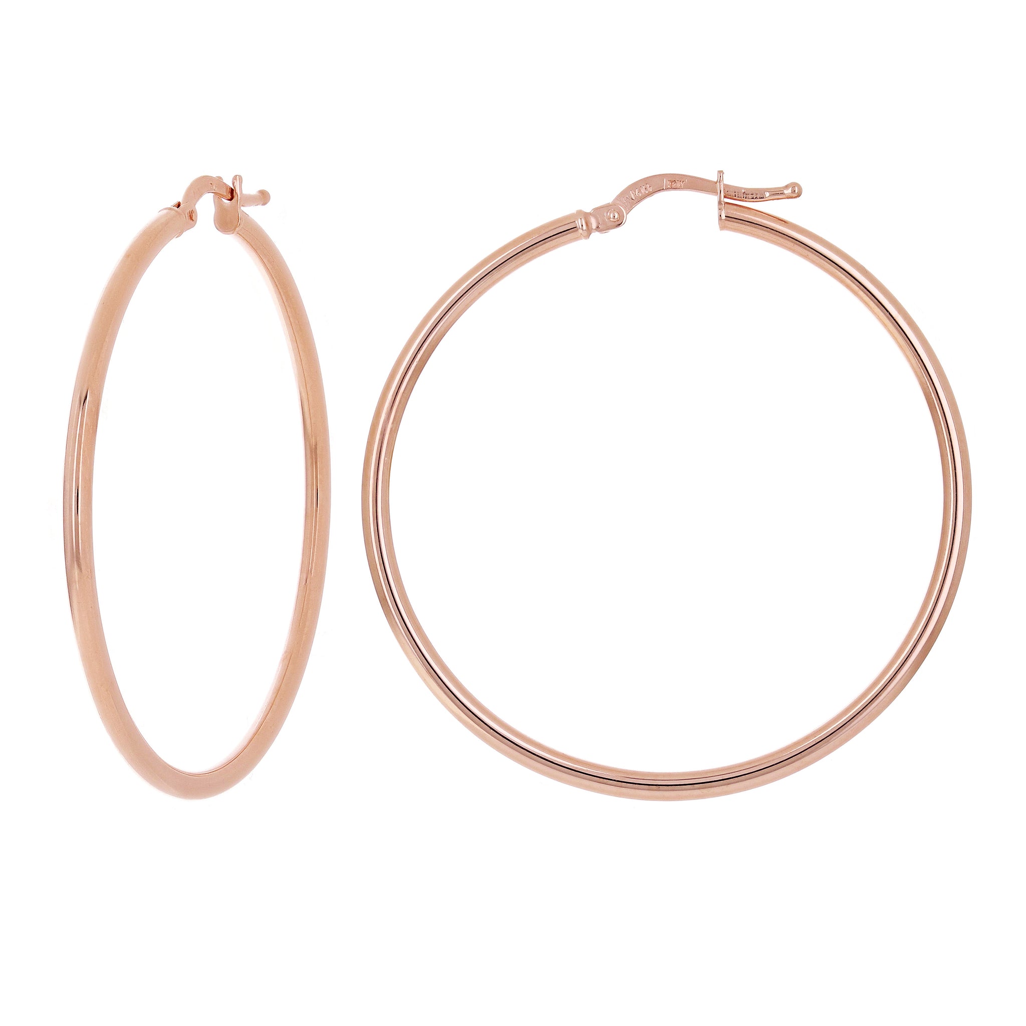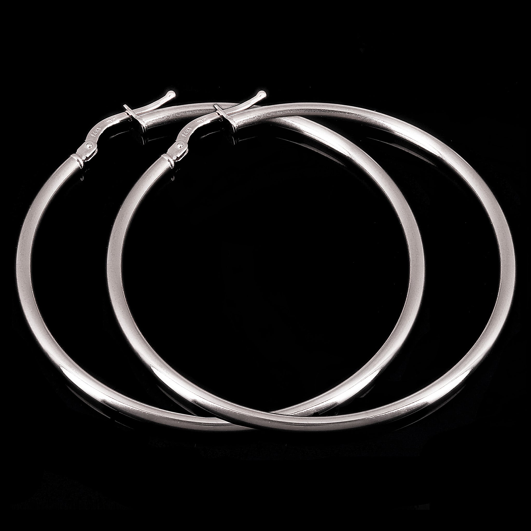 Italian 14k White or Rose Gold High Polished Plain Hollow Hoop Earrings Various Sizes