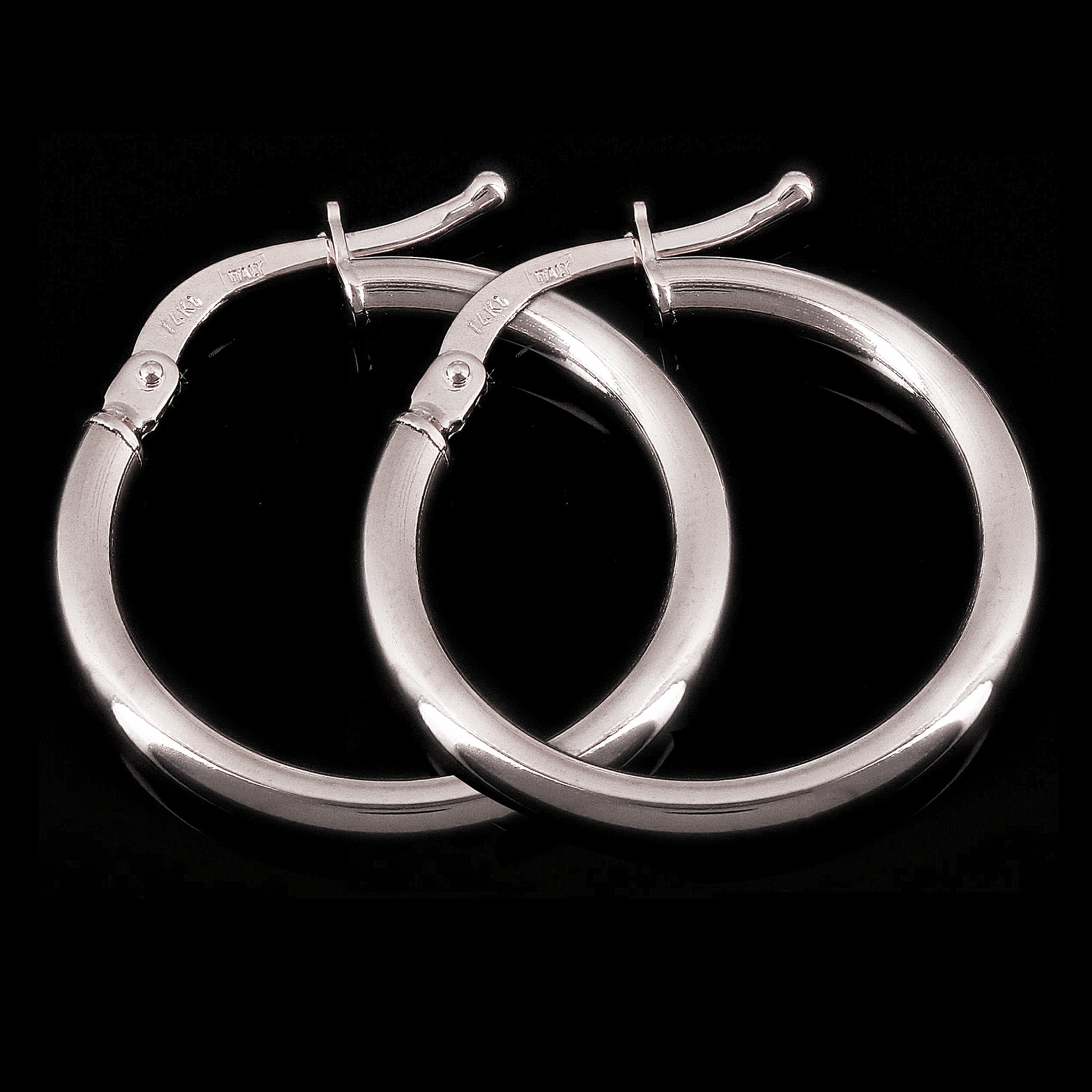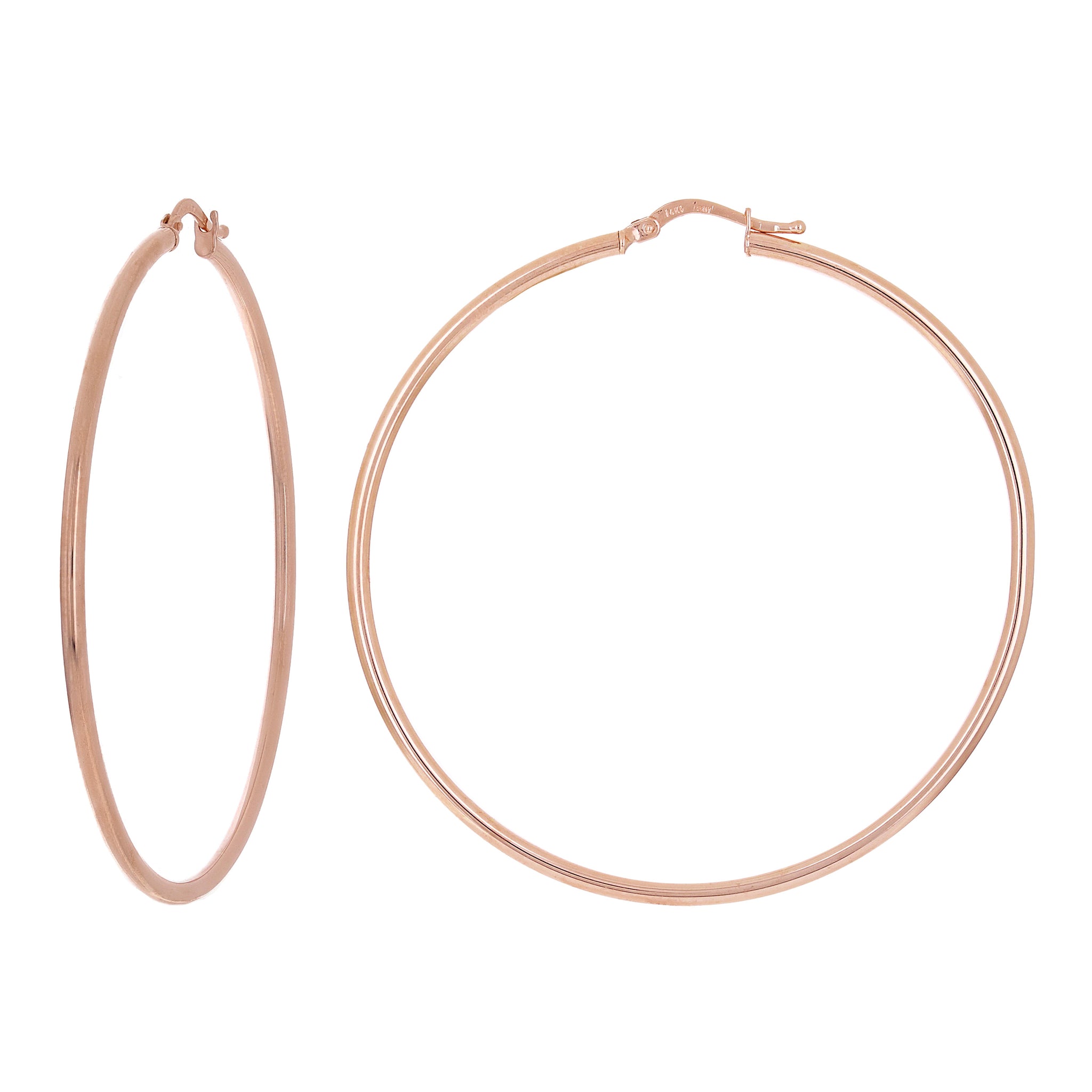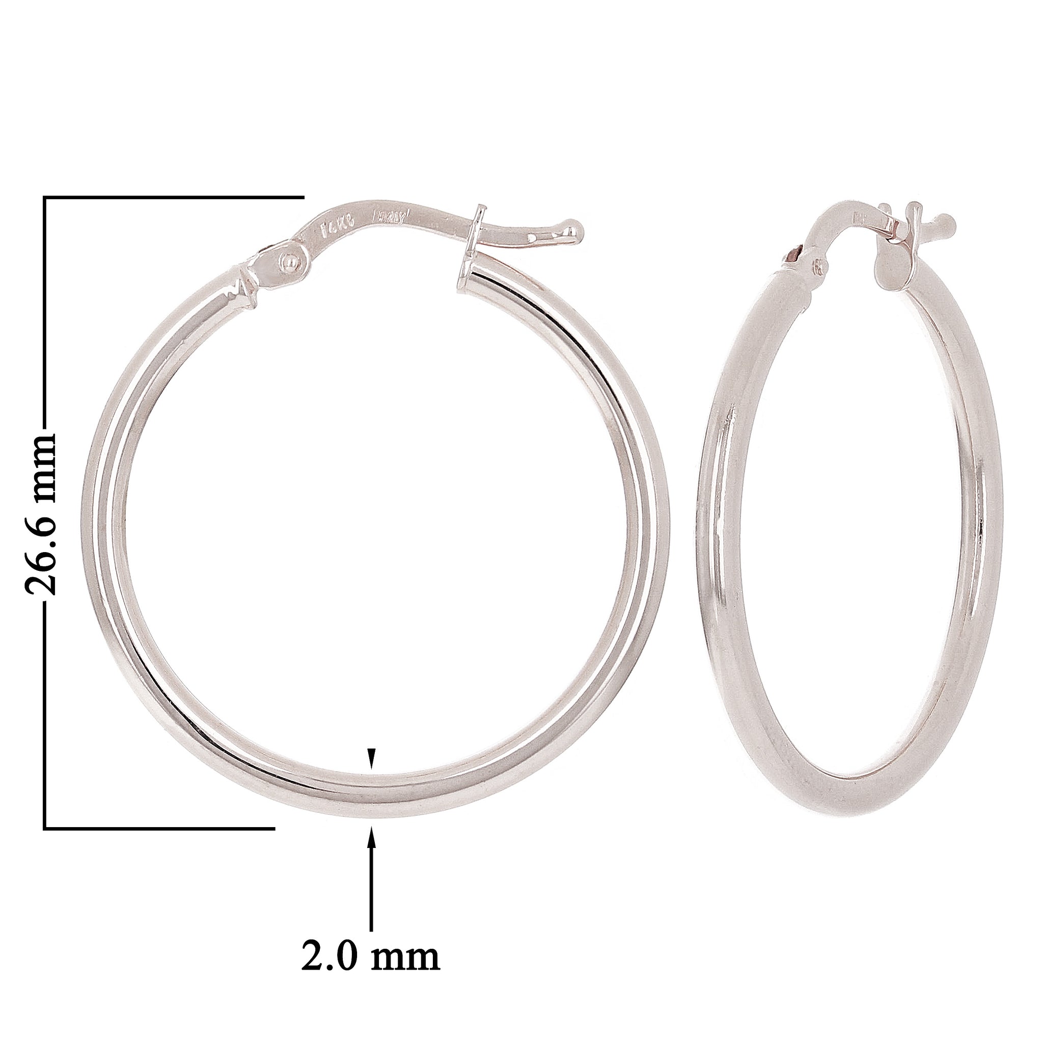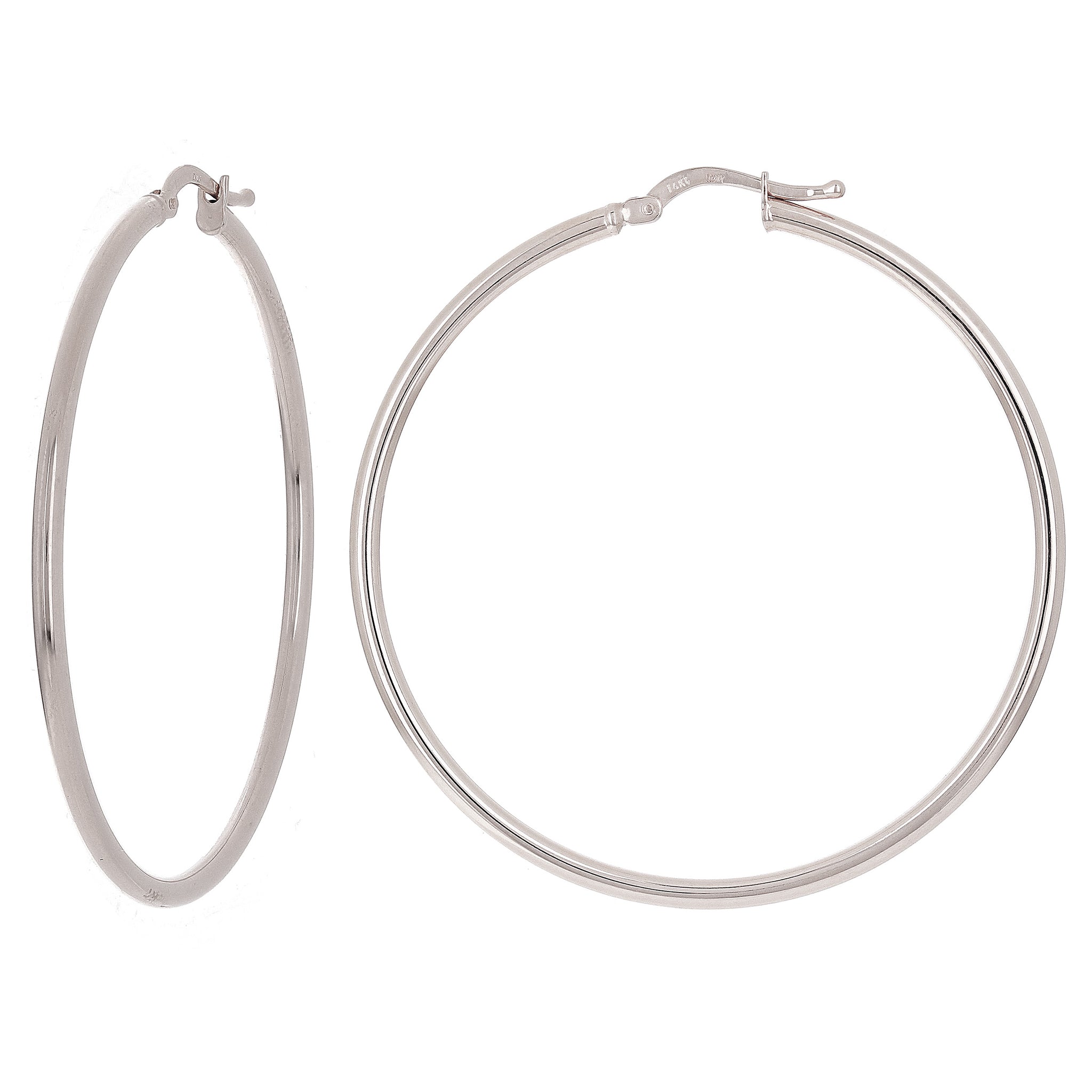 Italian 14k White or Rose Gold High Polished Plain Hollow Hoop Earrings Various Sizes