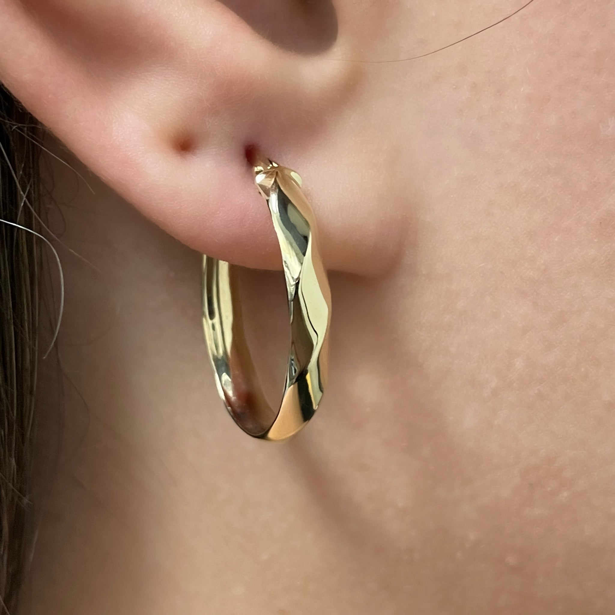 Italian 14k Yellow Gold Basket Weave Oval Hoop Earrings 4mm 1" x 0.75" 1.8 grams
