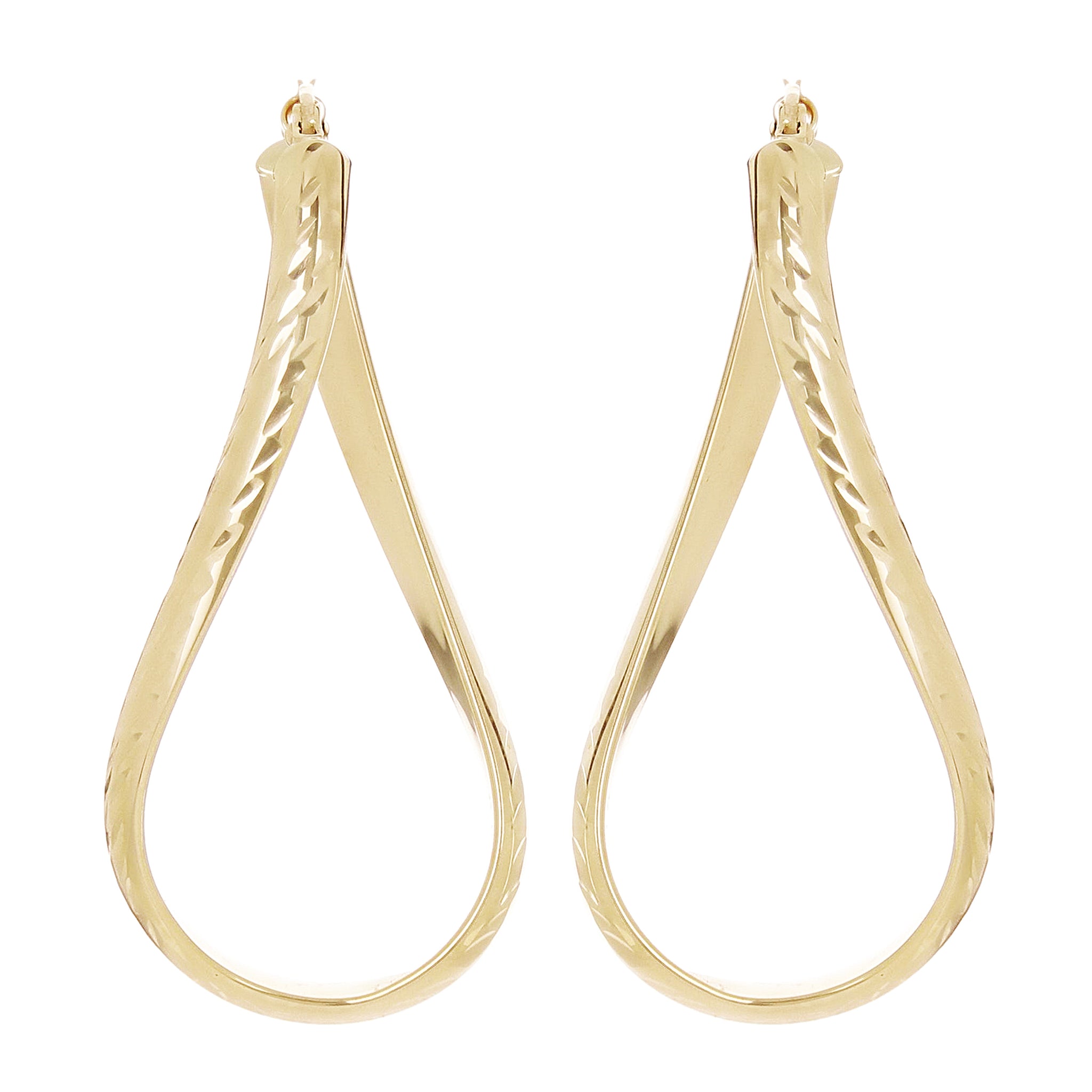 Italian 14k Yellow Gold Diamond Cut Twisted Oval Hoop Earrings 1.4" 1.7 grams