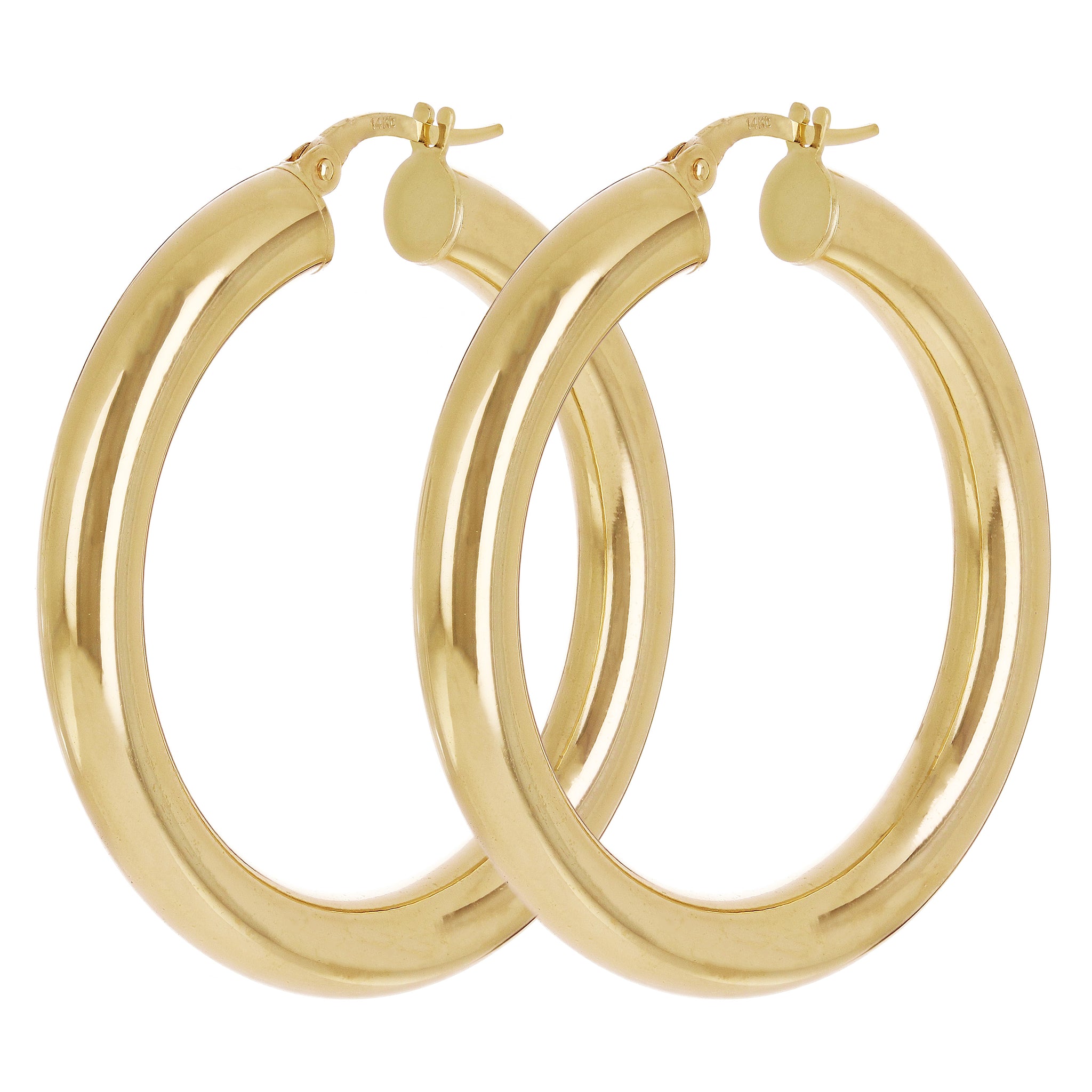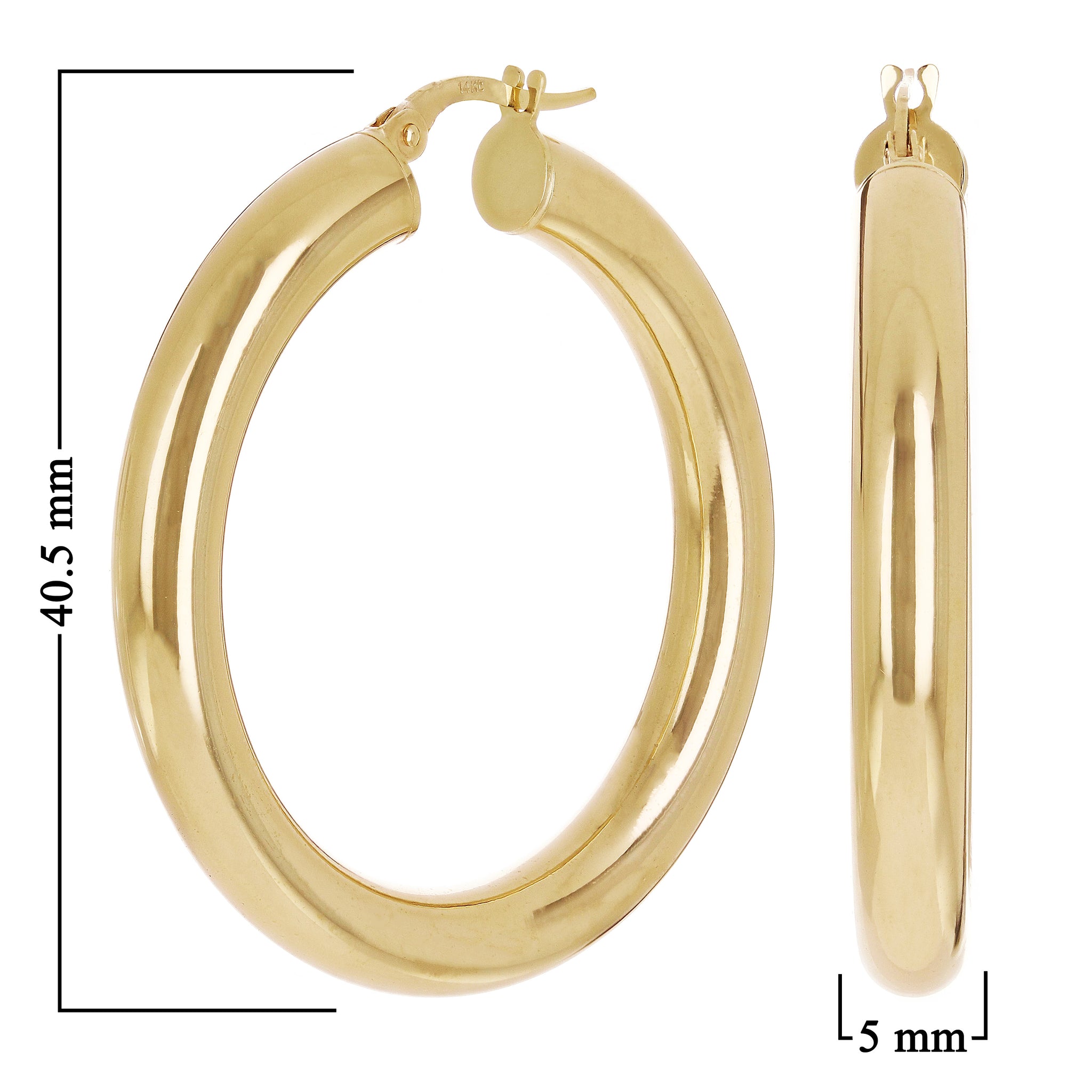 Italian 14k Yellow Gold High Polished 1.6" 5mm Diameter Round Hoop Earrings 6.2g