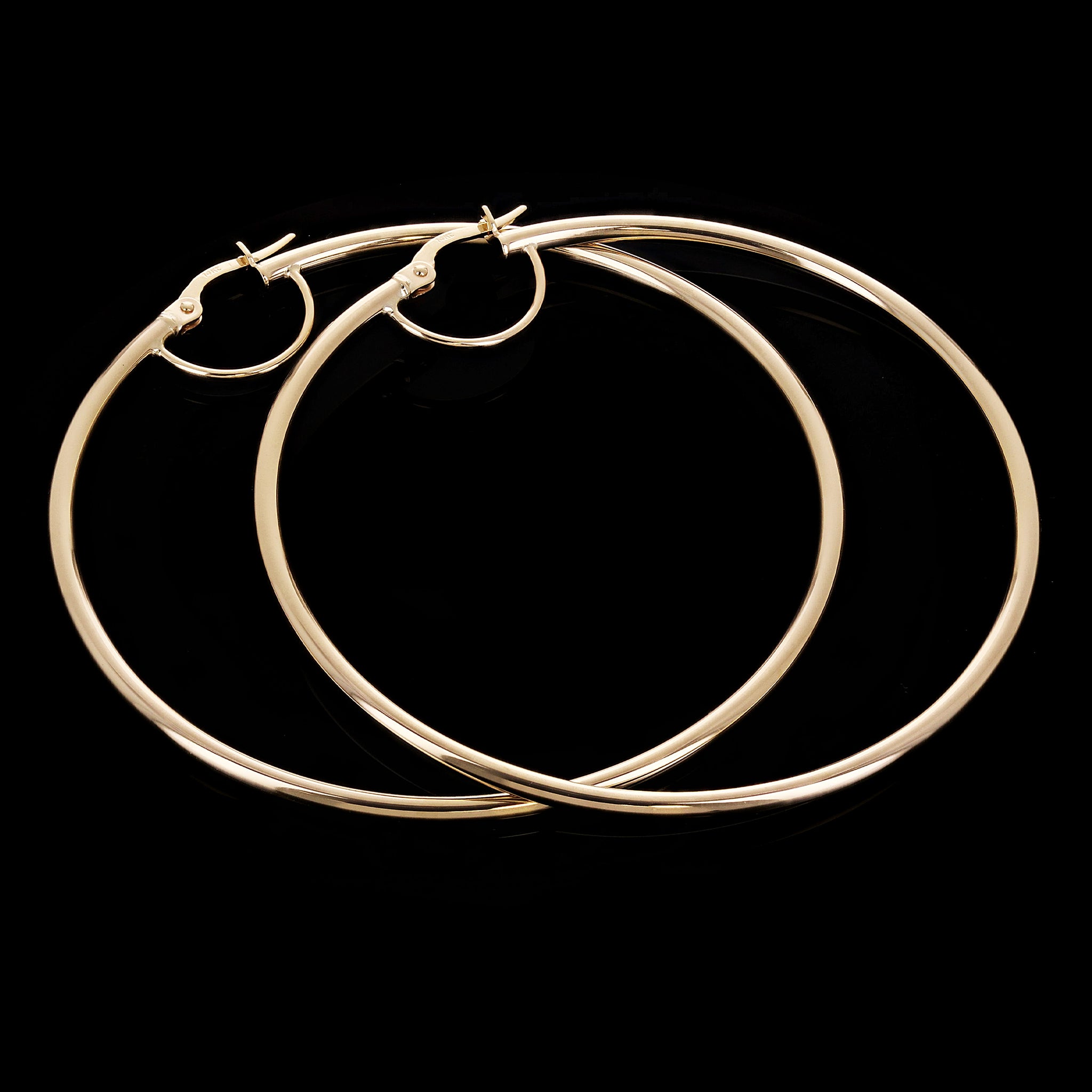 Italian 14k Yellow Gold High Polished Round Hoop Earrings 2mm 2" 2.8 grams