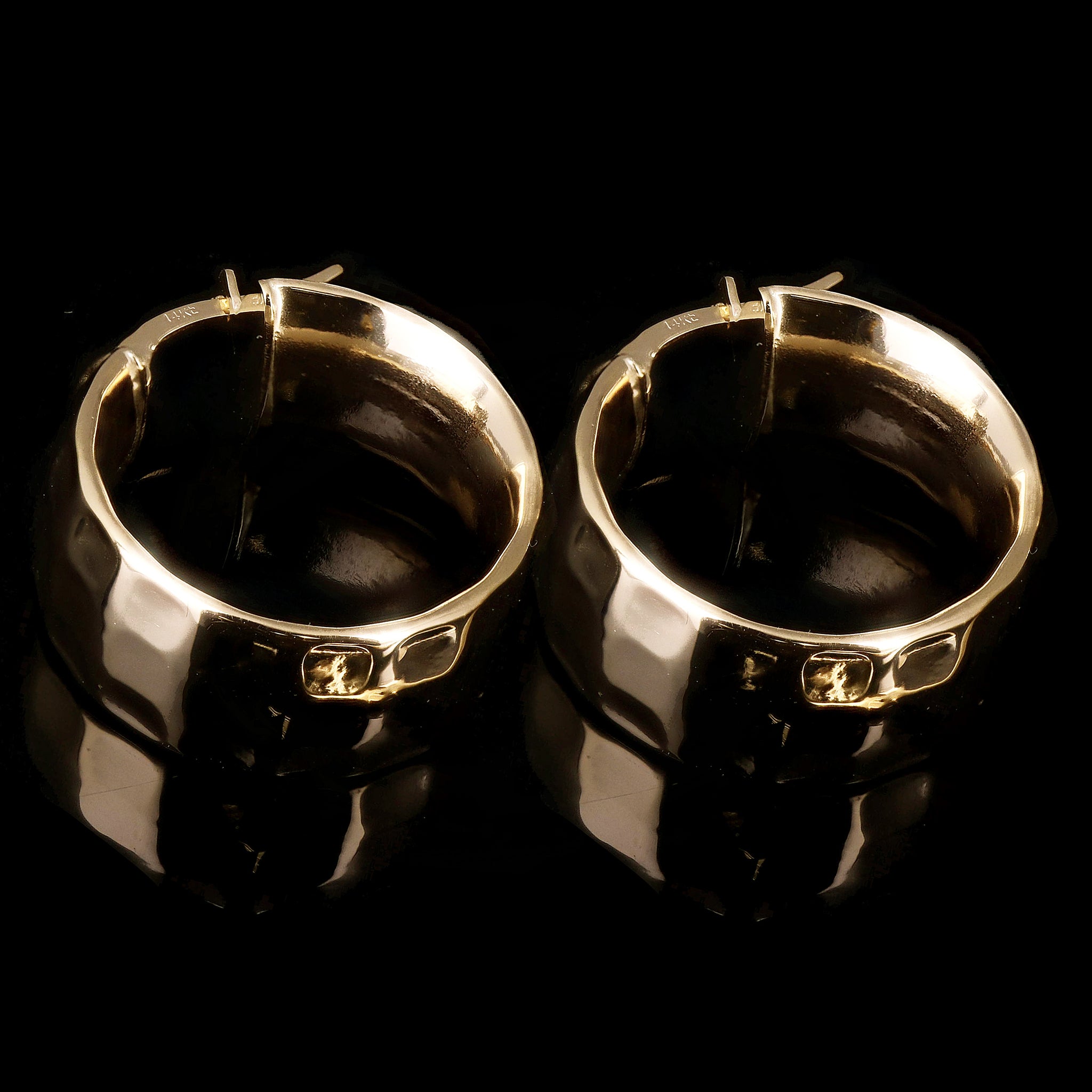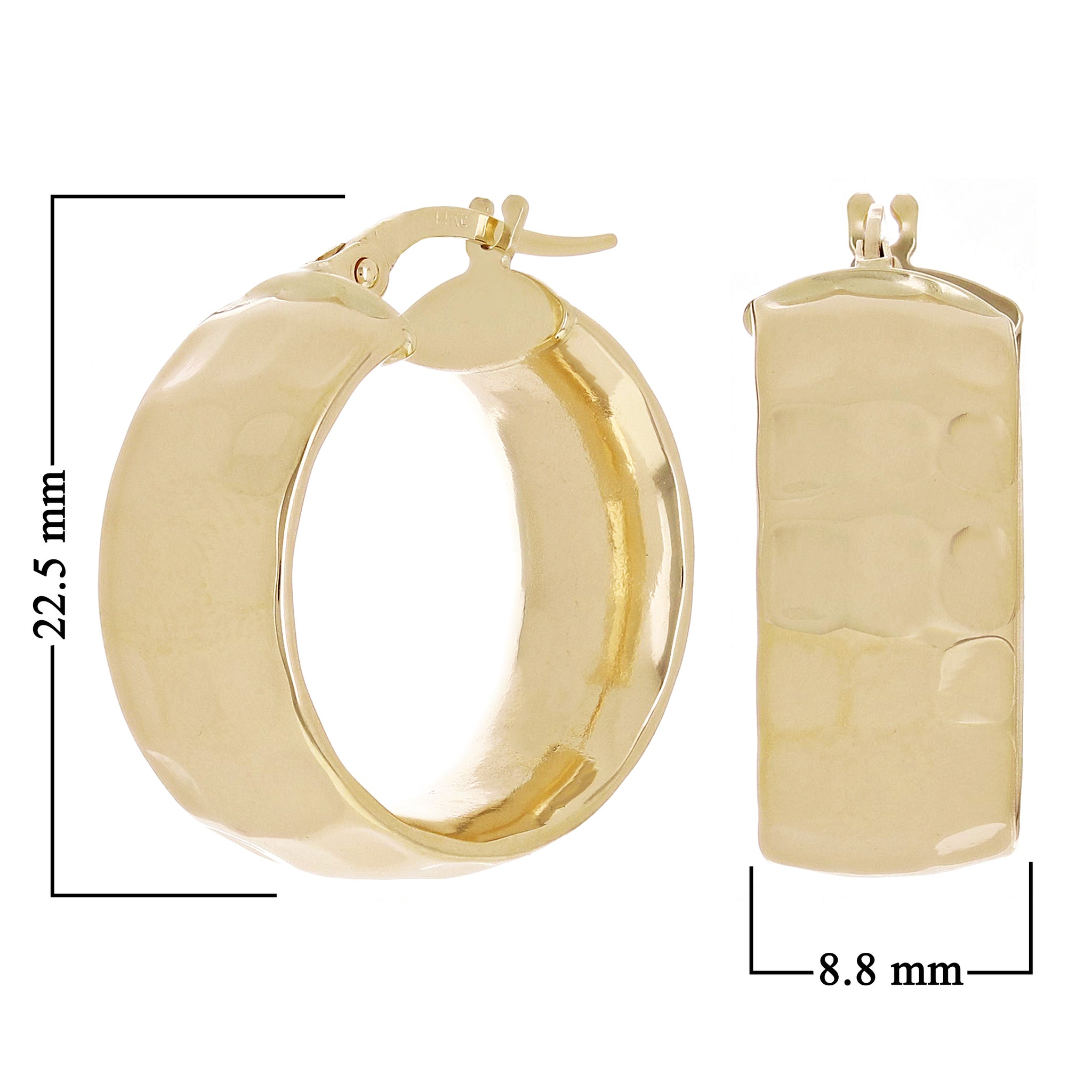 Italian 14k Yellow Gold Hollow Hammered Hoop Earrings 22.5 x 8.8mm 4.2 grams