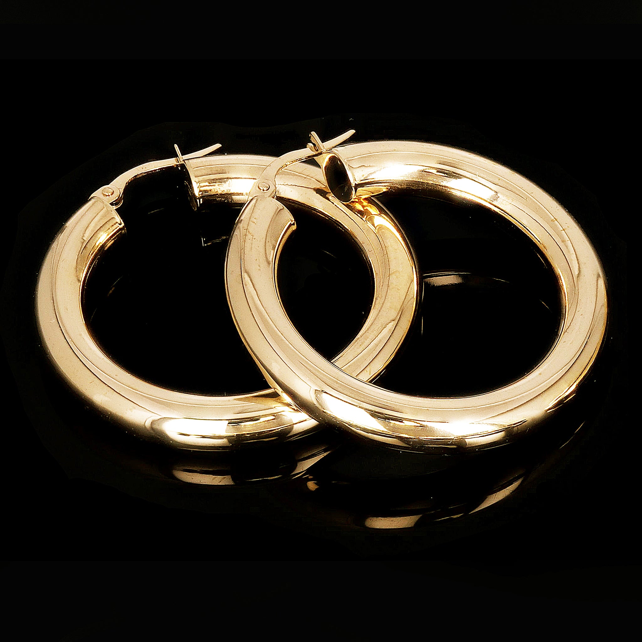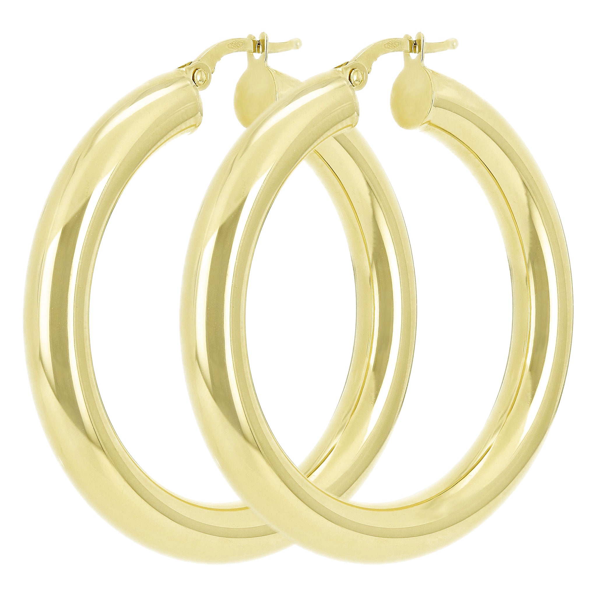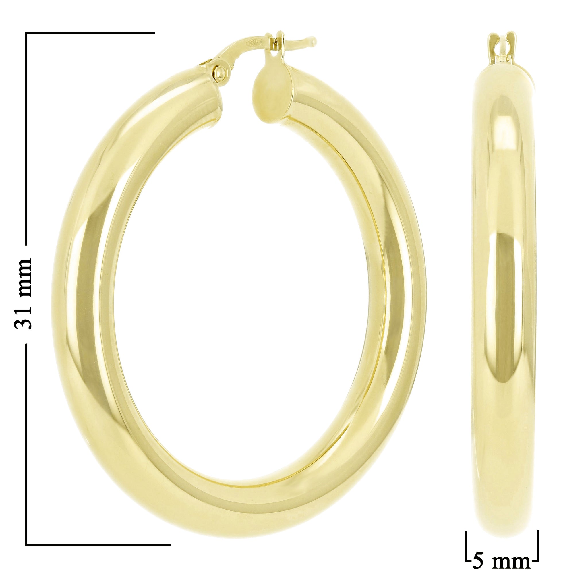 Italian 14k Yellow Gold Hollow High Polished Huggies Hoop Earrings 1.2" 5mm 4.4g