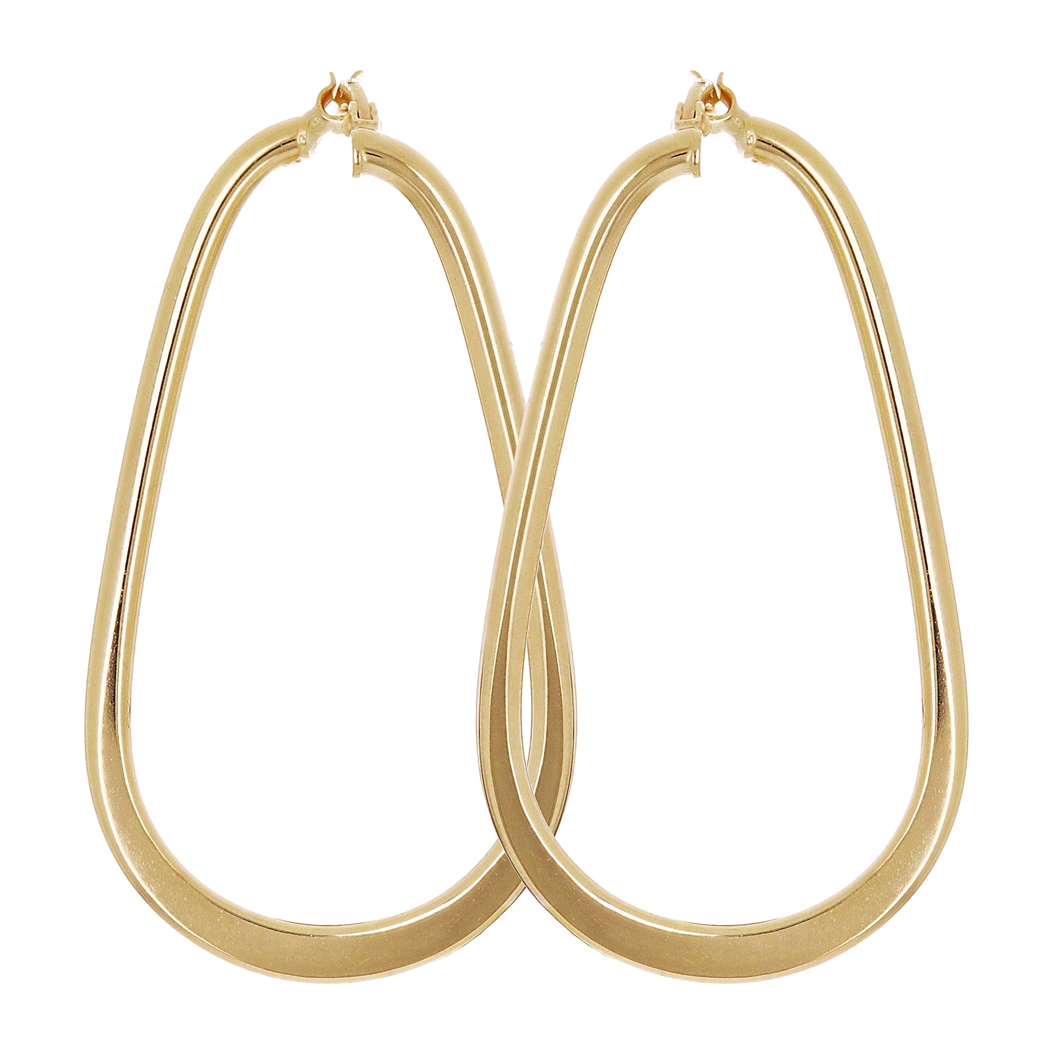 Italian 14k Yellow Gold Oblong Oval U-Shaped Hoop Earrings 1.6" 3 grams
