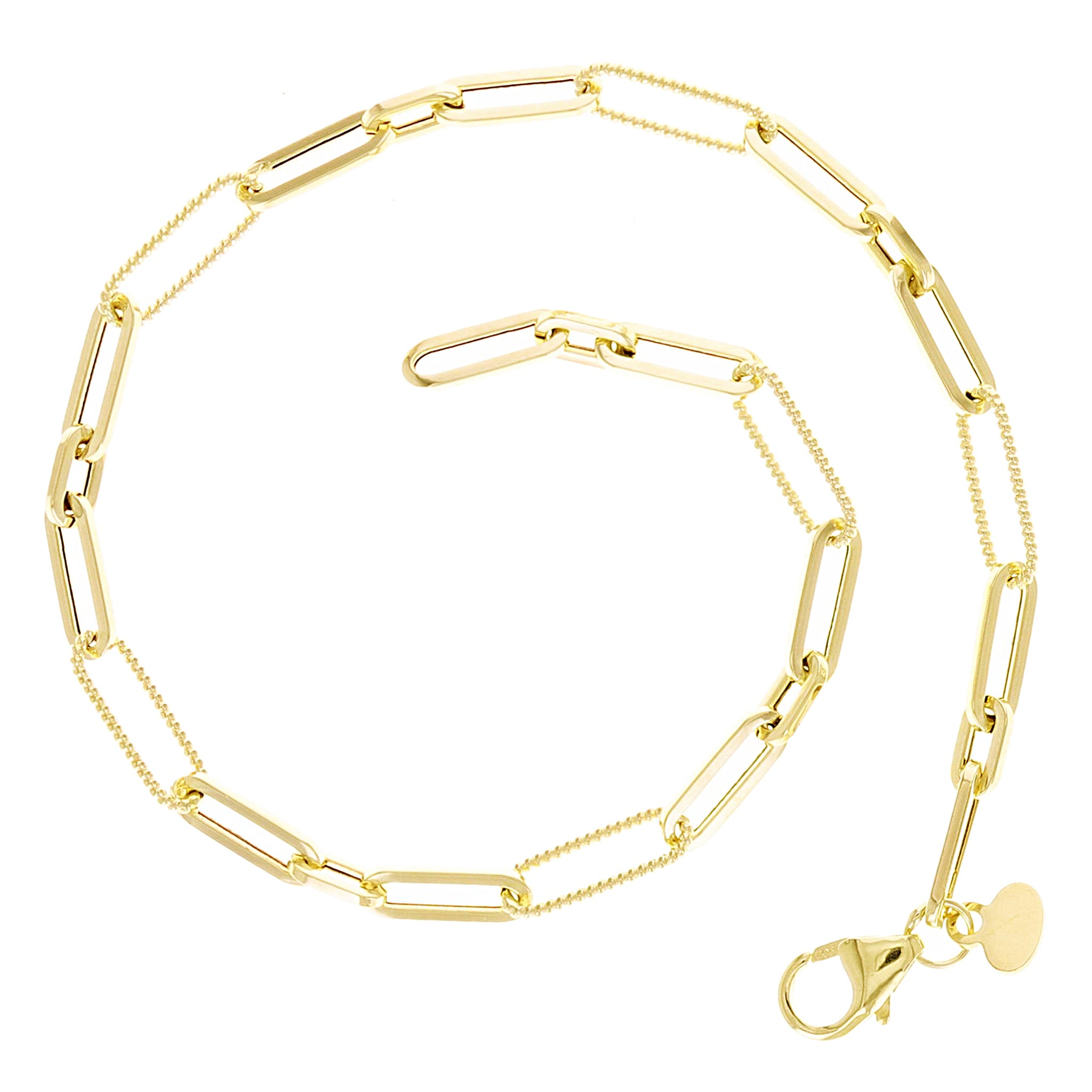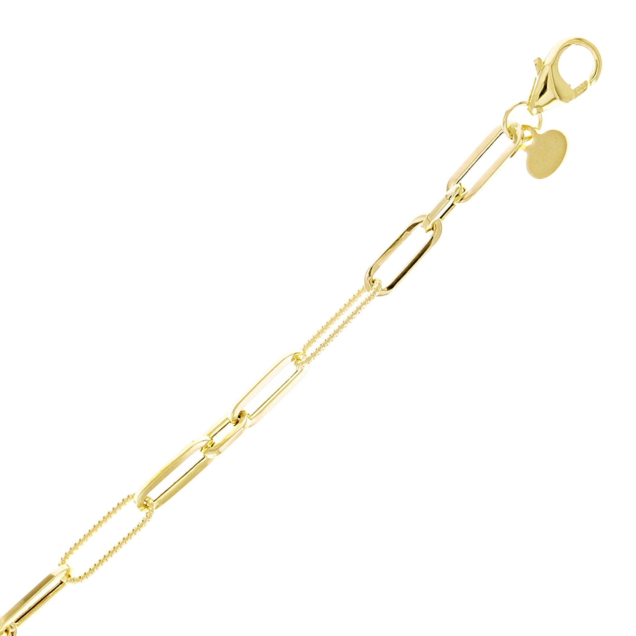 Italian 14k Yellow Gold Plain & Rope Paper Clip Link Bracelet 7.5" 3.6mm 2.2gram