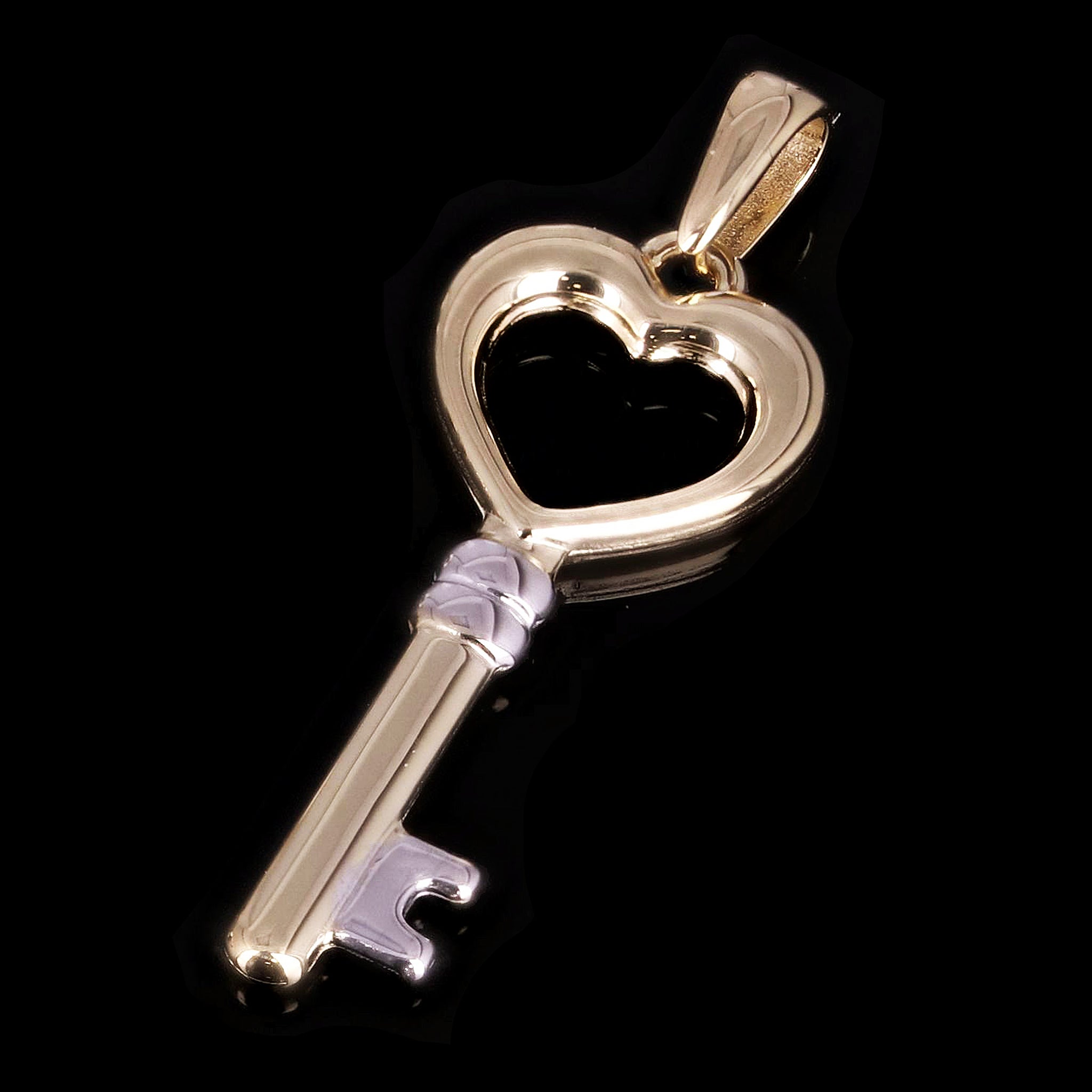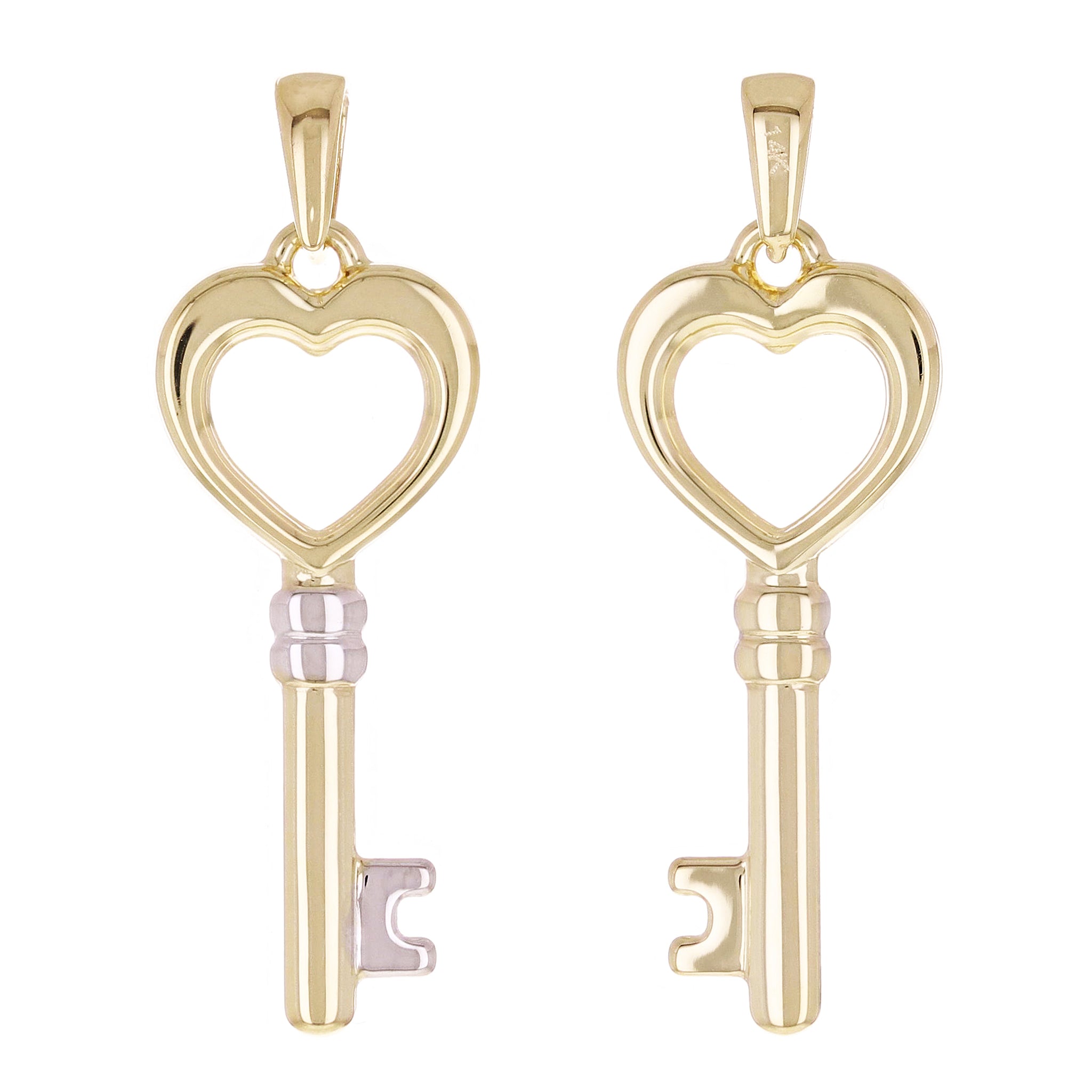 Italian 14k Yellow & White Gold Key Charm Pendant 1.3" 1 grams