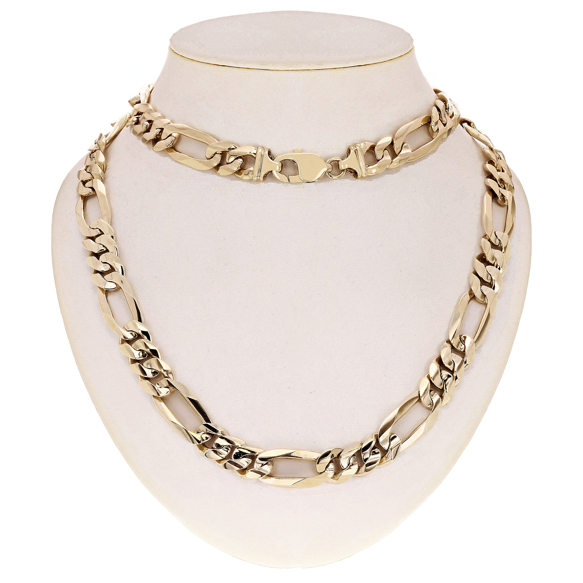 Men's 14k Yellow Gold Solid Heavy Figaro Chain Necklace 15mm 20" - 28"